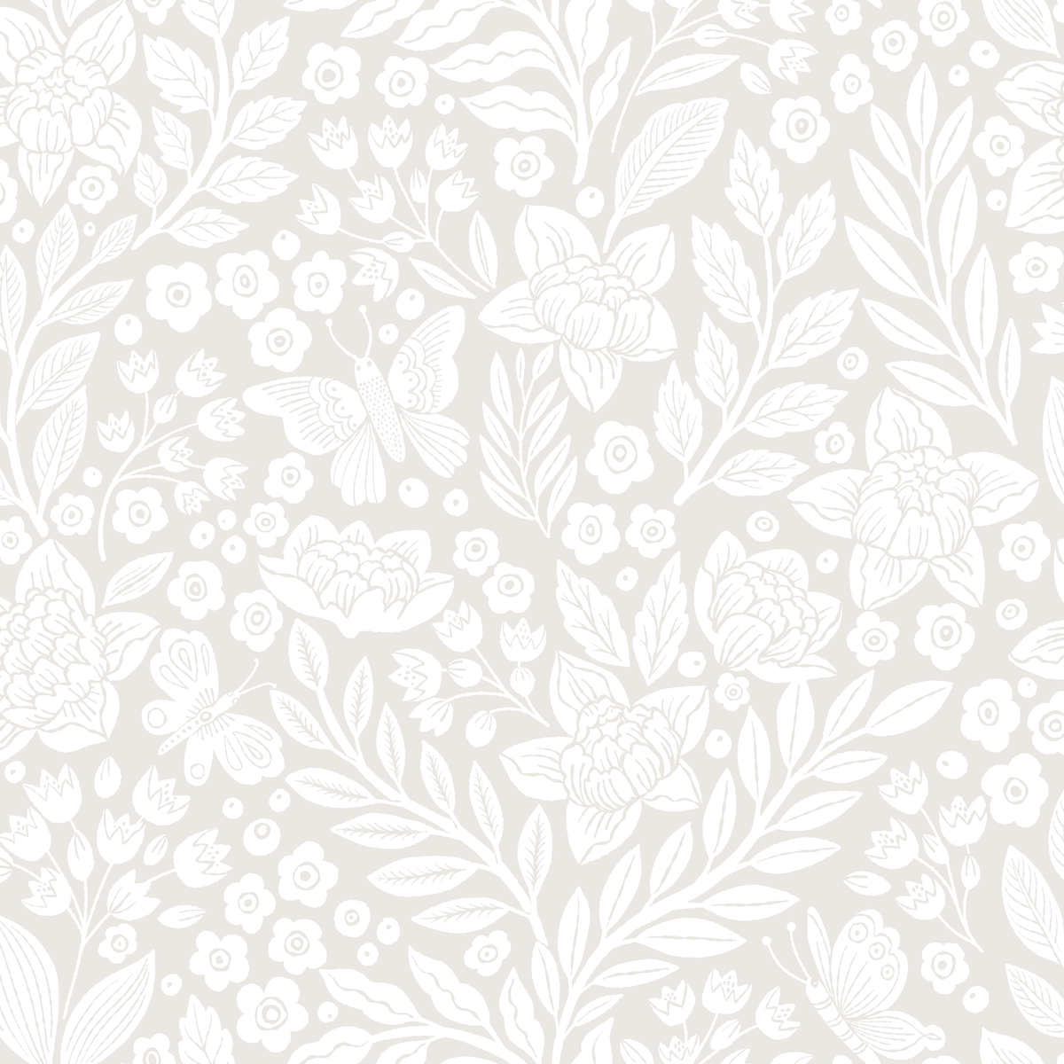 Butterfly Garden är en romantiskt blommig tapet som kommer att förtrolla ditt hem med sin vackra och livfulla design. Tapeten är dekorerad med en mängd olika blommor, blad och kvistar i skiftande storlek och karaktär, vilket ger en helt unik och försiktigt färgsprakande inredningsdetalj.