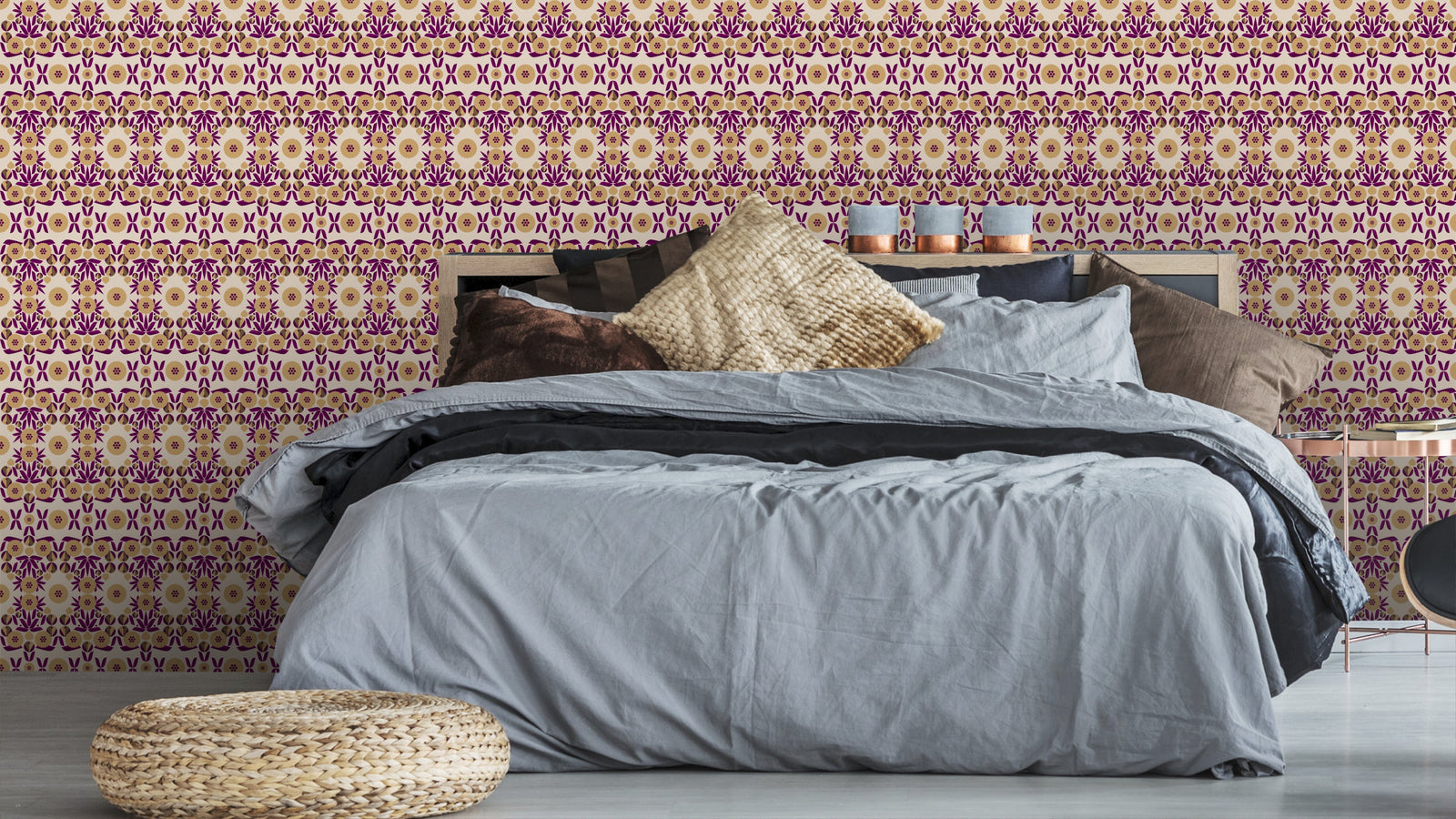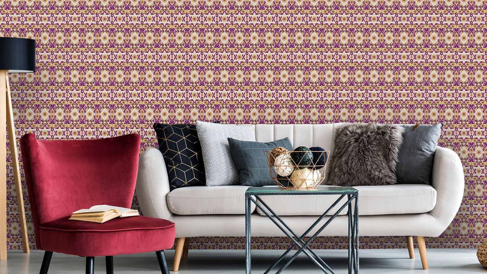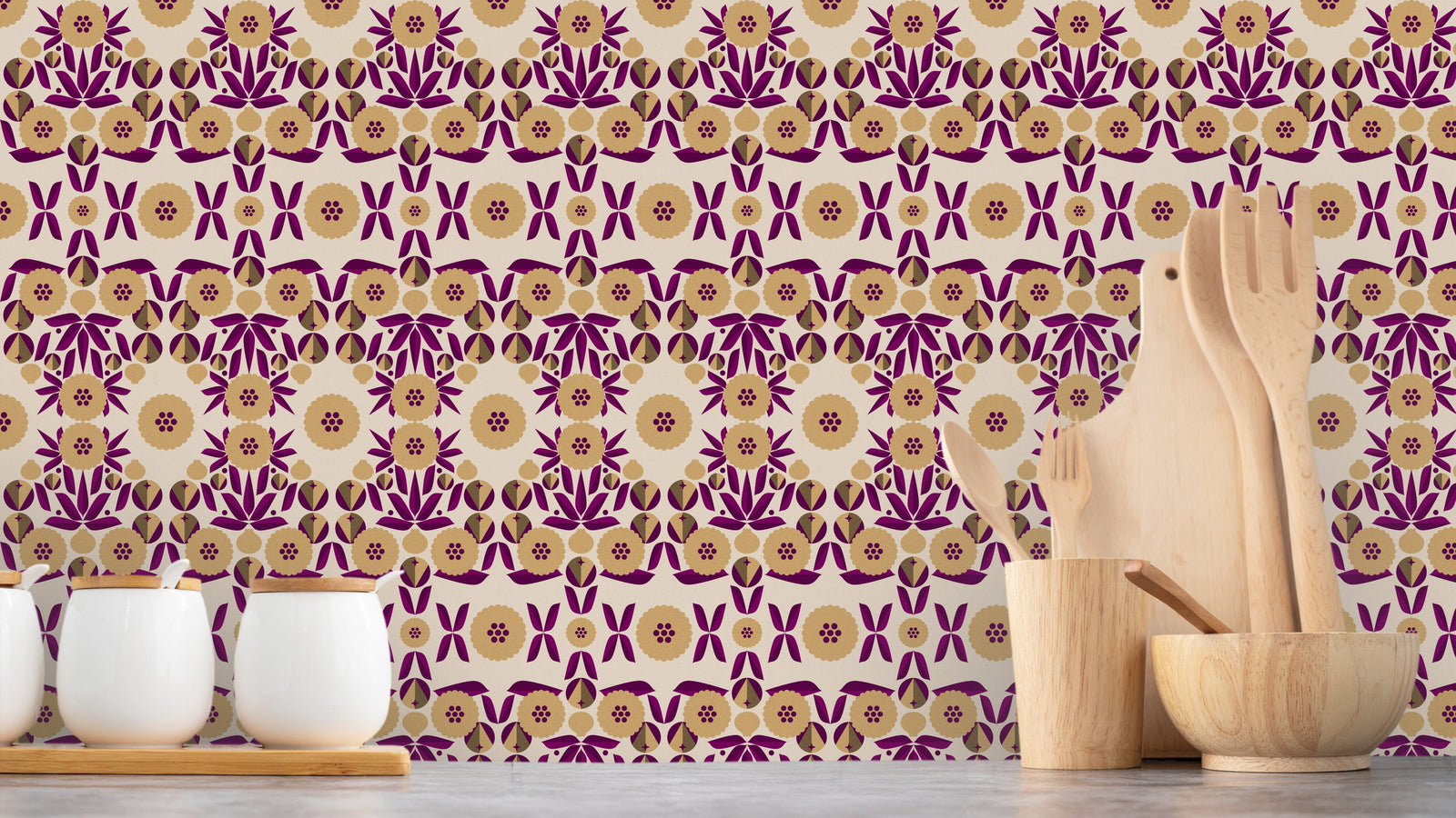 Tapeten "Pioner i sin abstraktaste form" är en vacker och unik design som verkligen fångar ögat. Den enkla men symmetriska upprepningen av mönstret ger tapeten en nästan folkloristisk känsla, som om den vore inspirerad av en gammal väv.