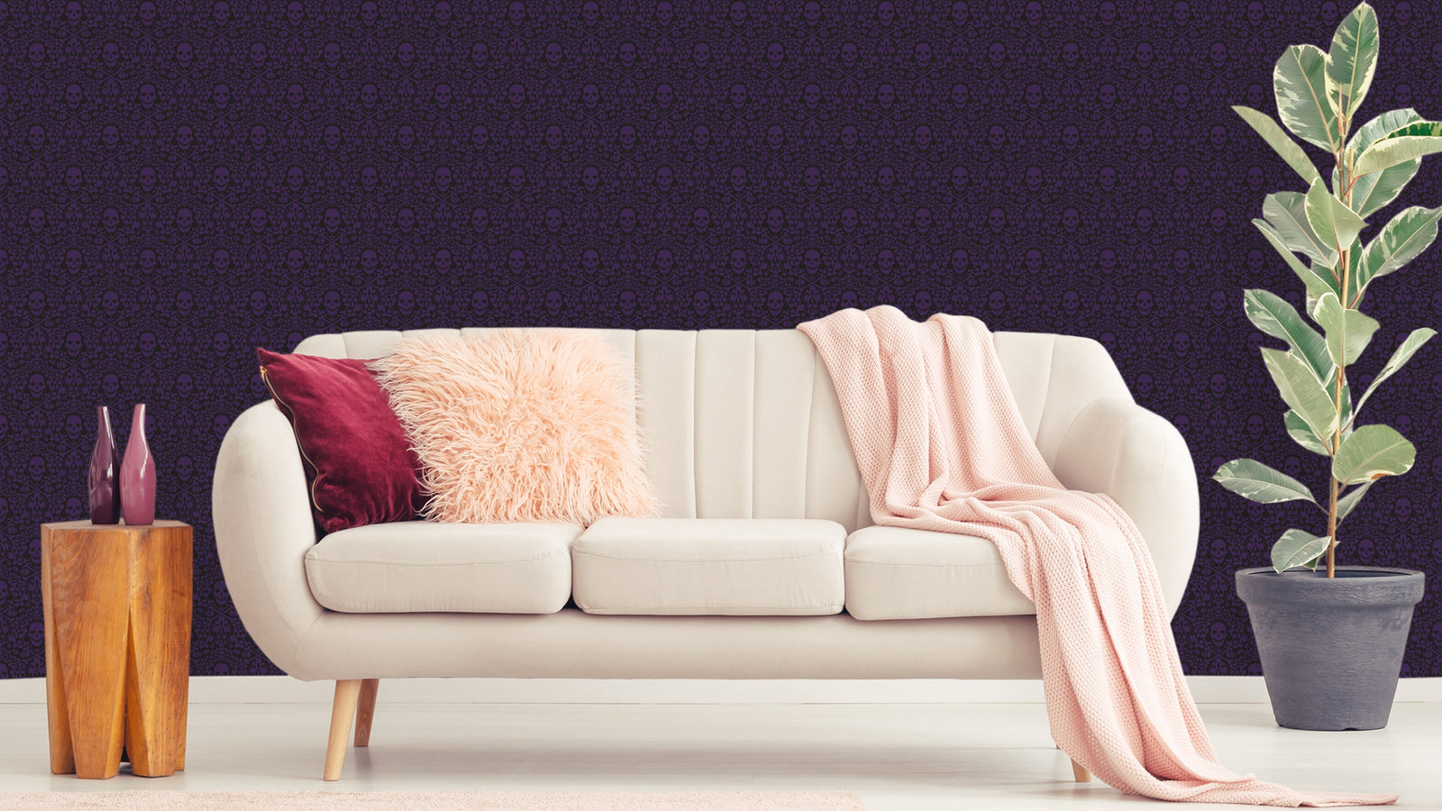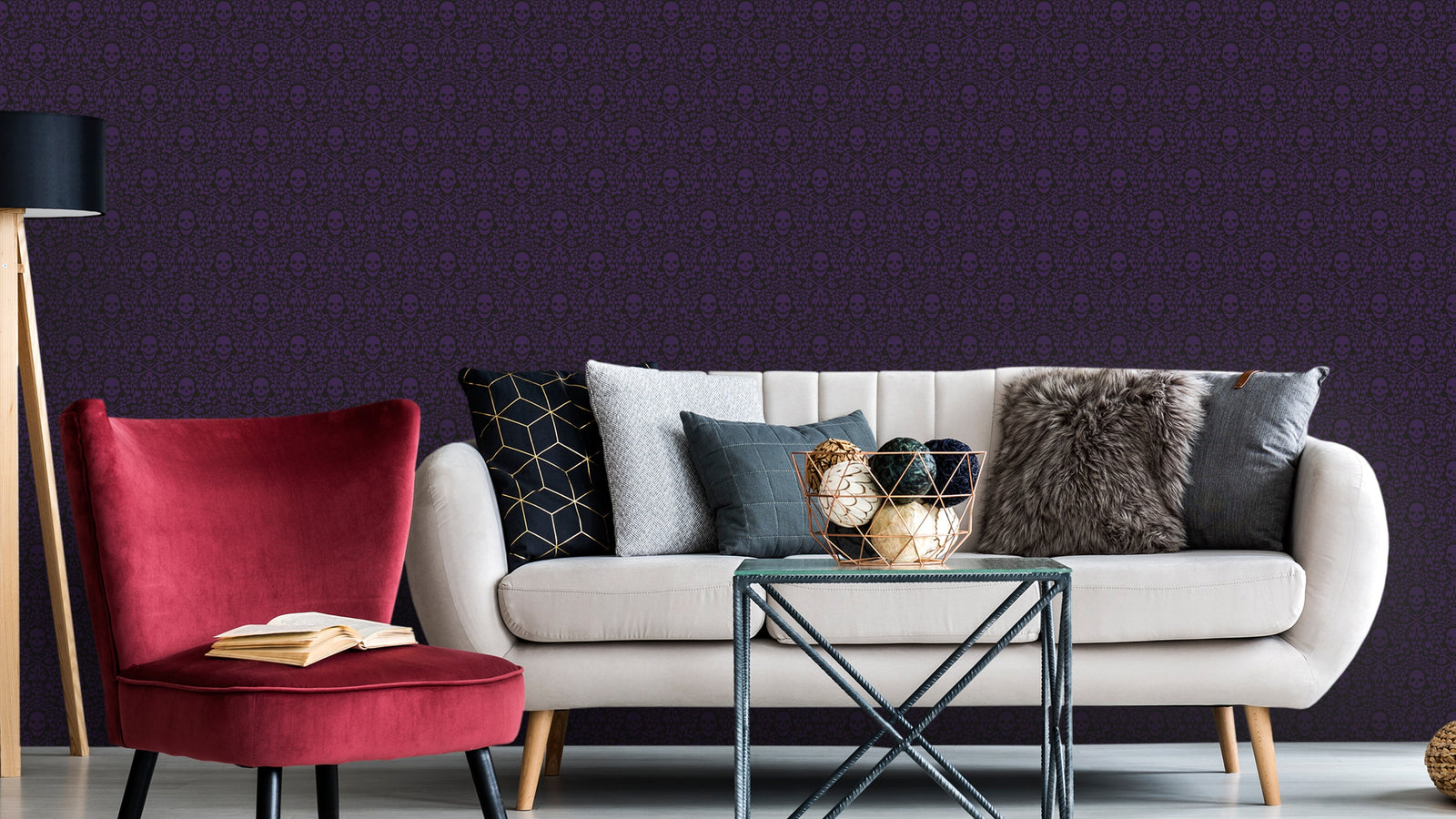 Det är lätt att associera dödskallar med något negativt eller skrämmande, men i detta fall är de snarare en symbol för styrka och mod. Tapeten är perfekt för de som vill skapa ett unikt och personligt uttryck i sitt hem. Den passar särskilt bra i rum som behöver lite extra krydda, som exempelvis ett tonårsrum eller en lounge.