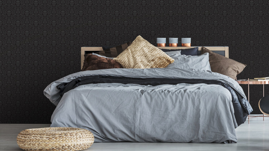 Det är lätt att associera dödskallar med något negativt eller skrämmande, men i detta fall är de snarare en symbol för styrka och mod. Tapeten är perfekt för de som vill skapa ett unikt och personligt uttryck i sitt hem. Den passar särskilt bra i rum som behöver lite extra krydda, som exempelvis ett tonårsrum eller en lounge.
