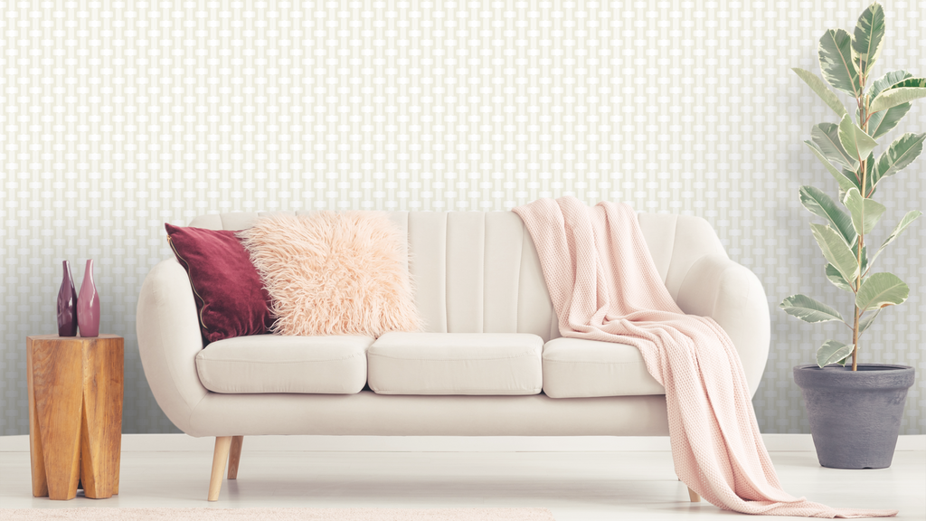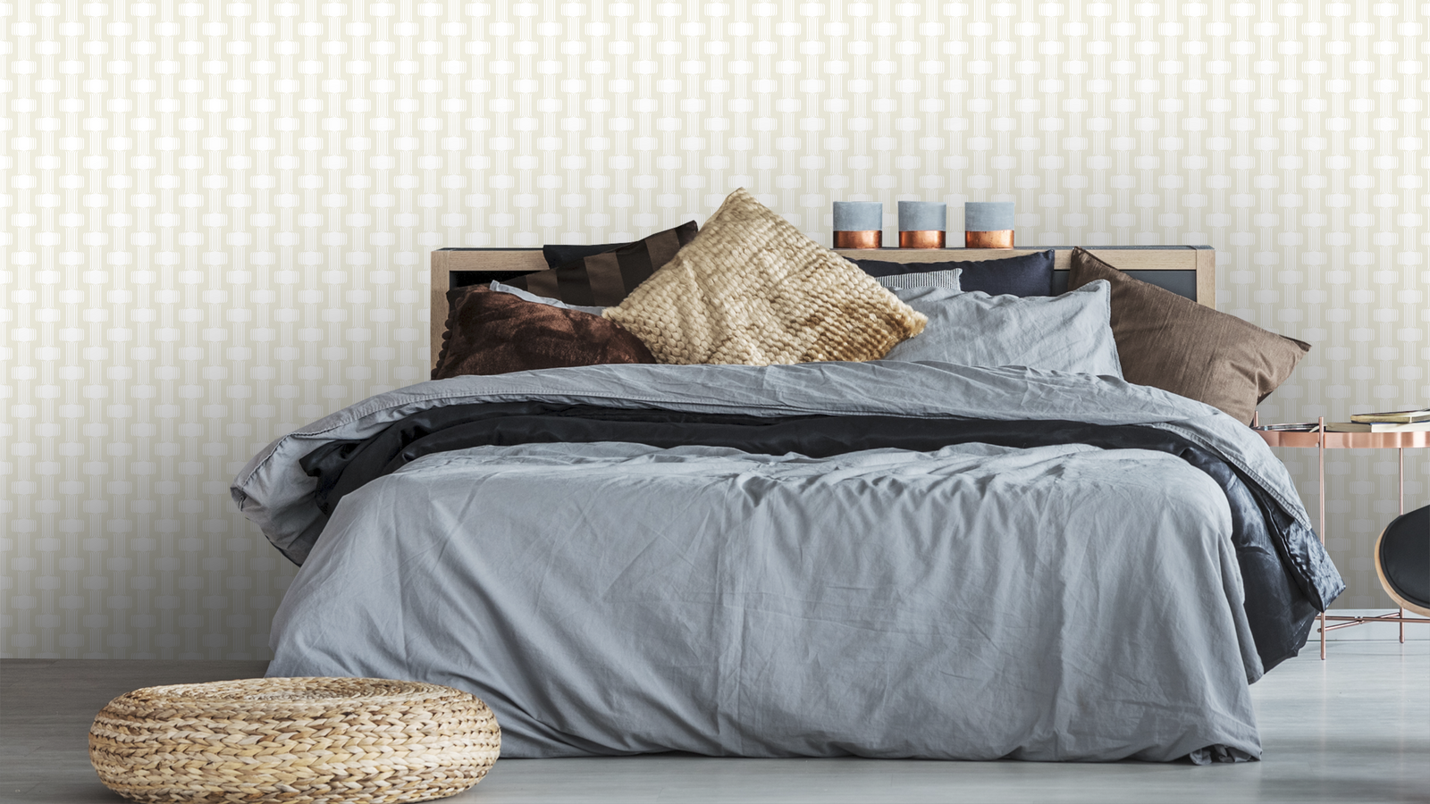 Klunka - ett symmetriskt tapetmönster som på lite avstånd nästan påminner om en grov väv. Denna retrotapet andas lite funkis men passar väl in även i moderna hem.