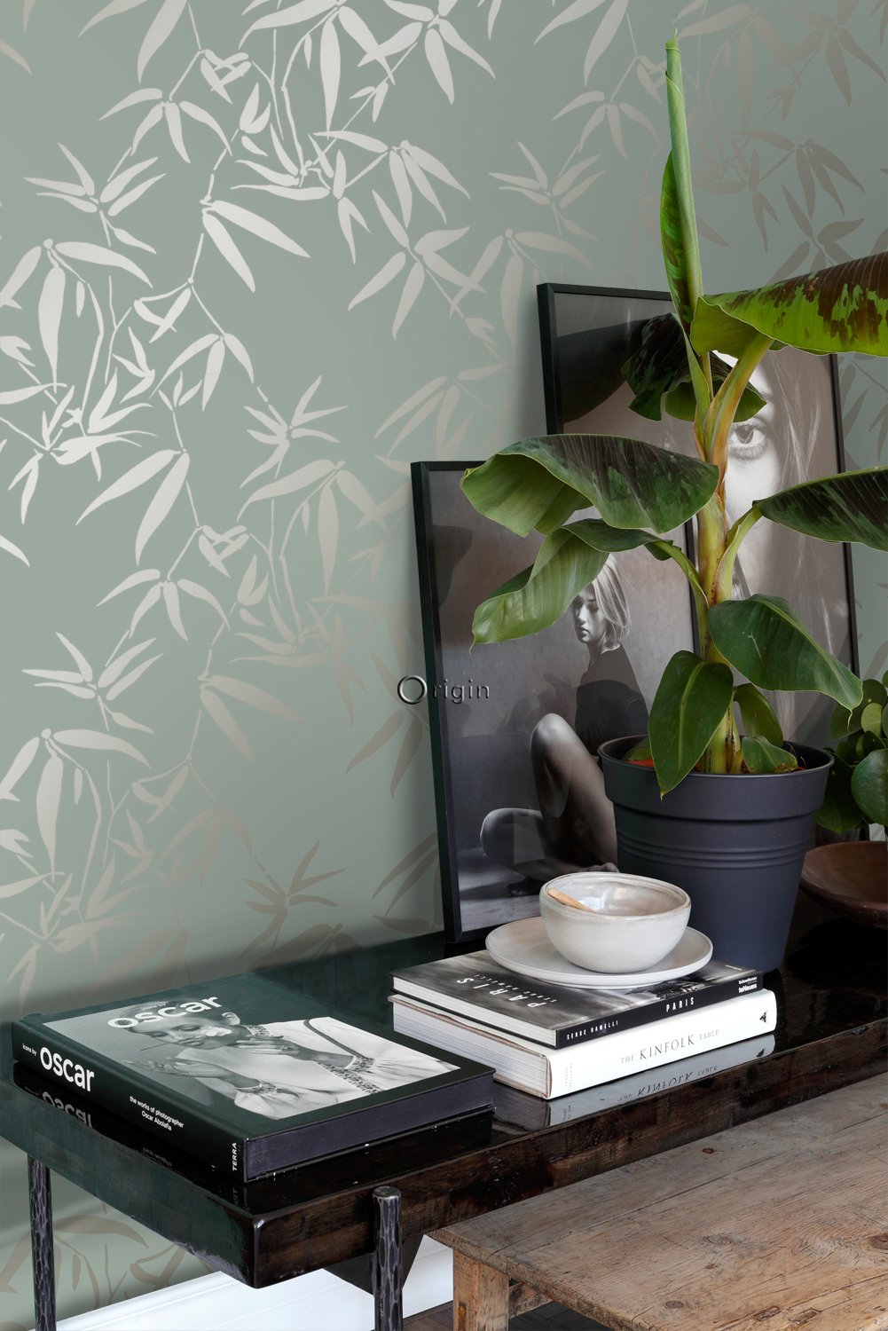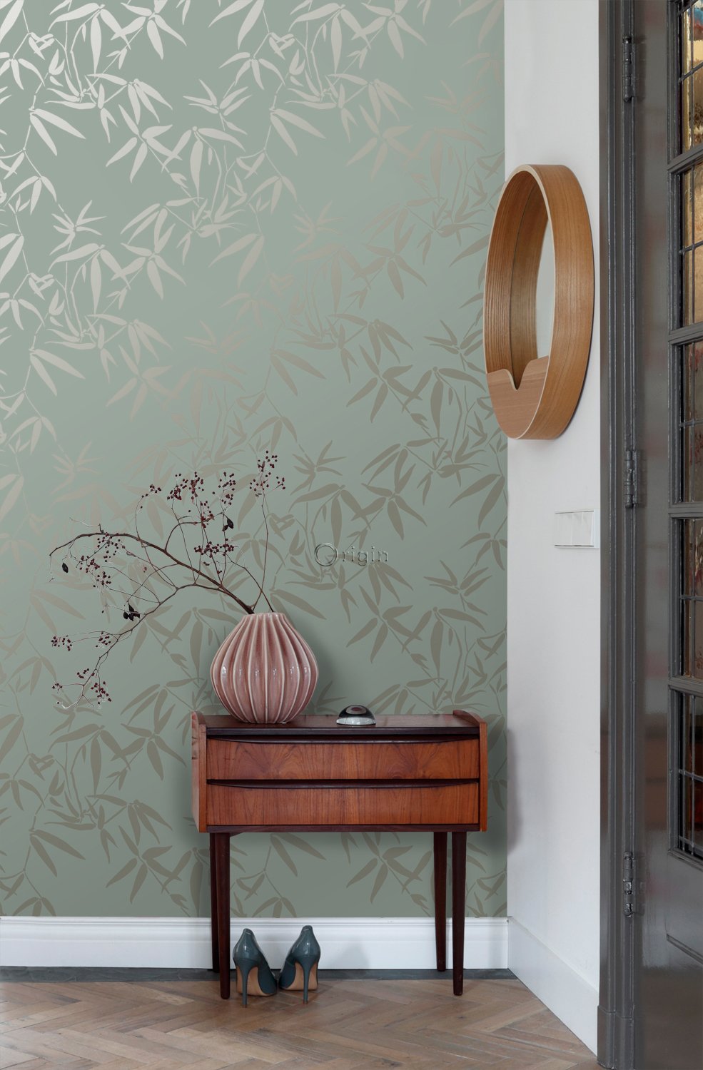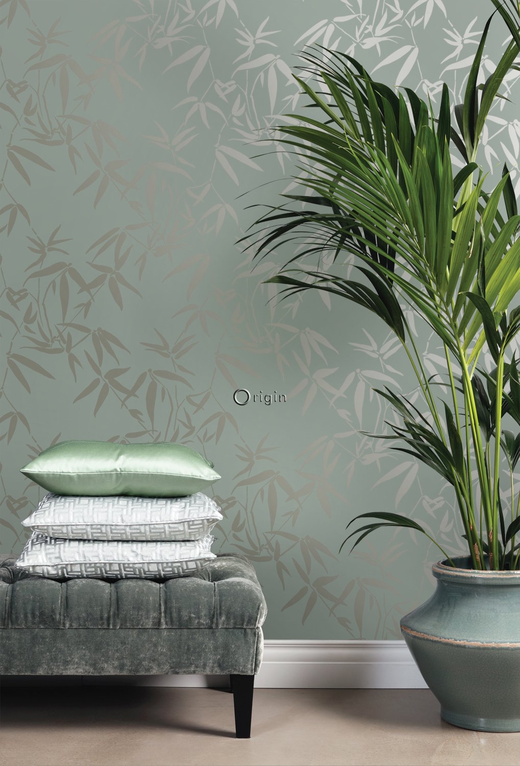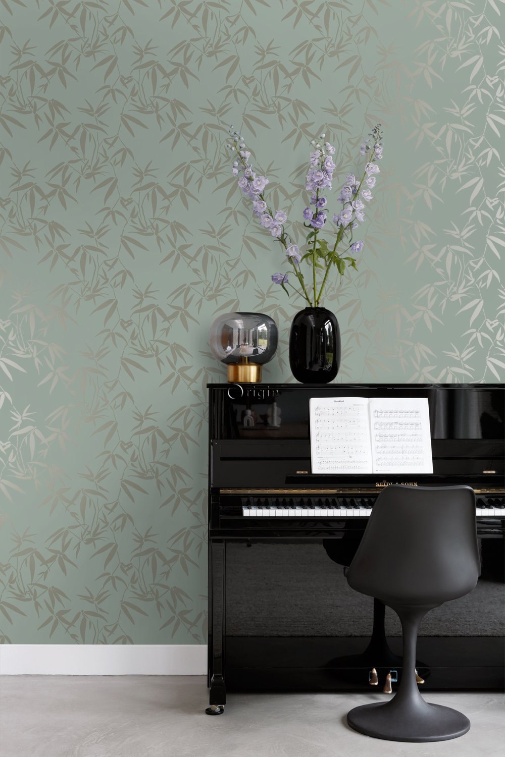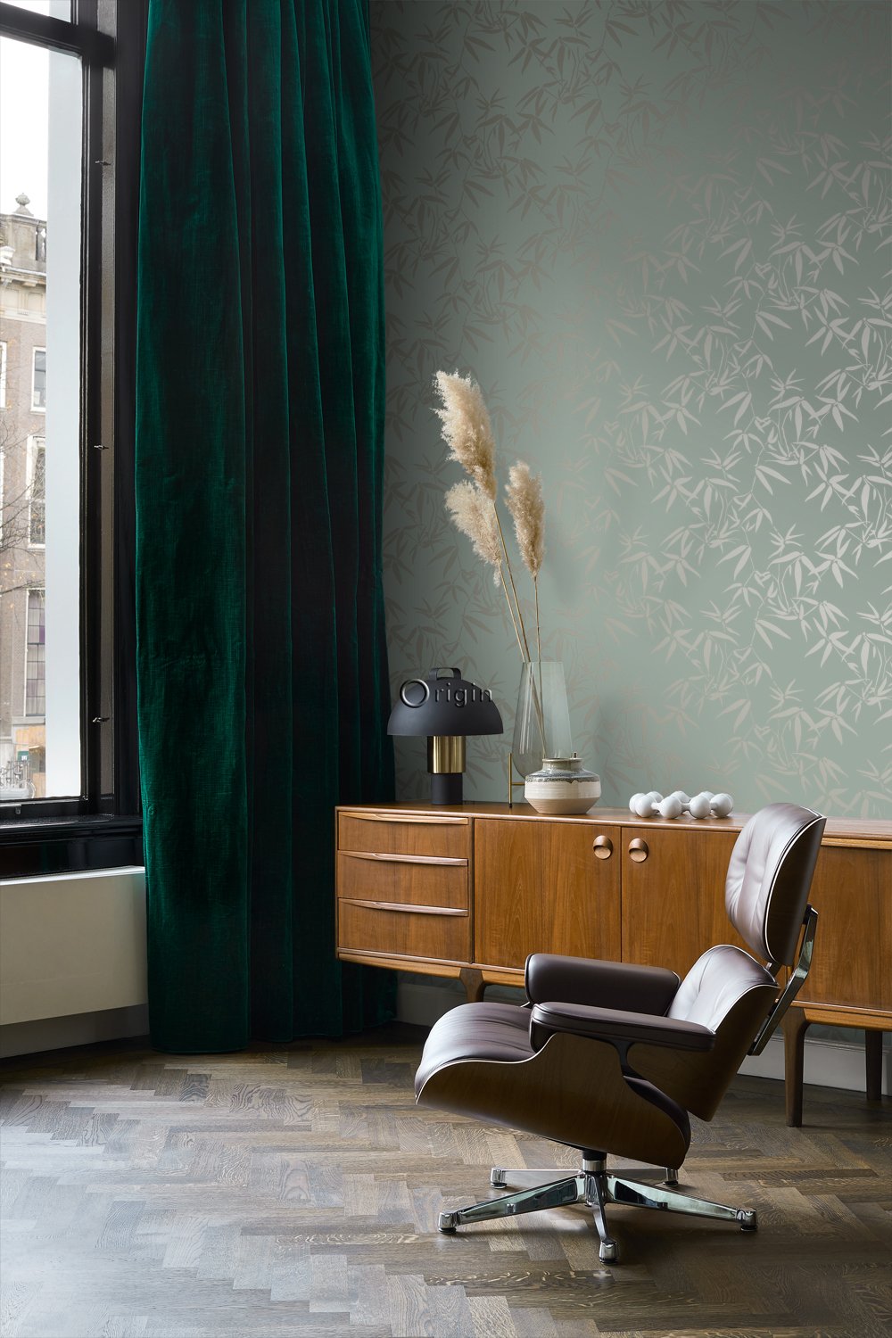 Smycka dina väggar med denna eleganta, iögonenfallande tapet med bambublad i grönt. Den spännande kontrasten mellan det blanka motivet och den extra matta ytan skapar en livfull dynamik och gör mönstret till en fest för ögat. Perfekt för en attraktiv accentvägg och ett subtilt sätt att ge din interiör lite glamour.