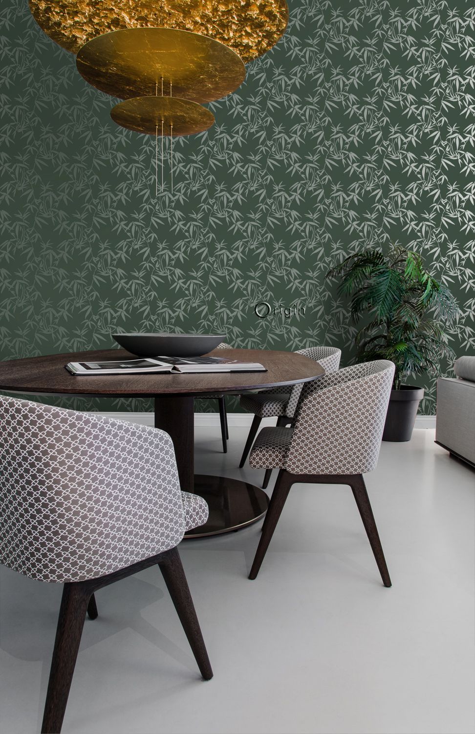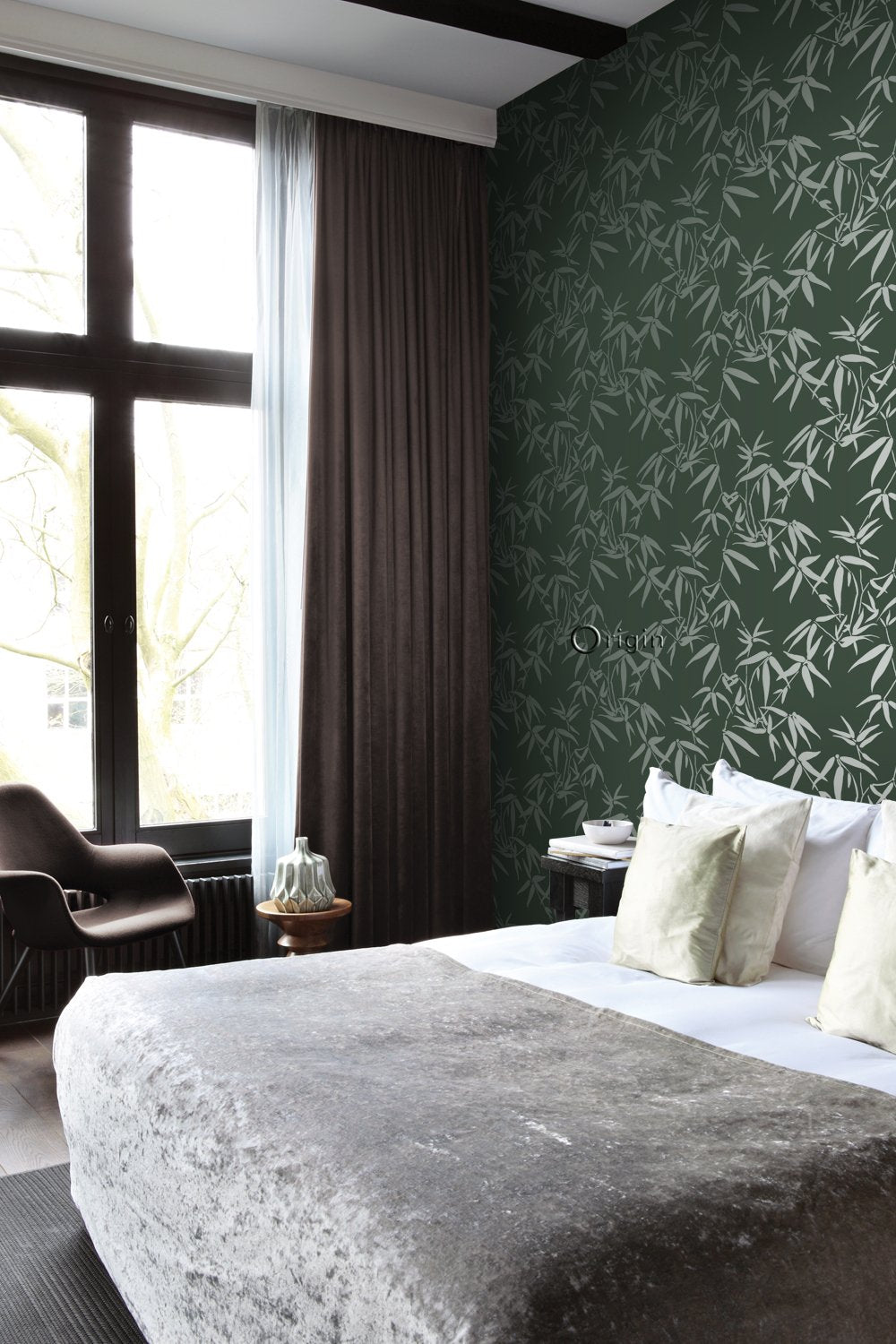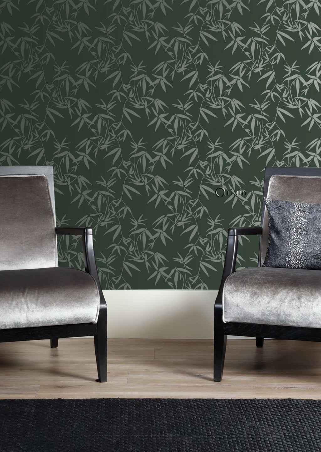 Smycka dina väggar med denna eleganta, iögonenfallande tapet med bambublad i mörkgrönt. Den spännande kontrasten mellan det blanka motivet och den extra matta ytan skapar en livfull dynamik och gör mönstret till en fest för ögat. Perfekt för en attraktiv accentvägg och ett subtilt sätt att ge din interiör lite glamour.