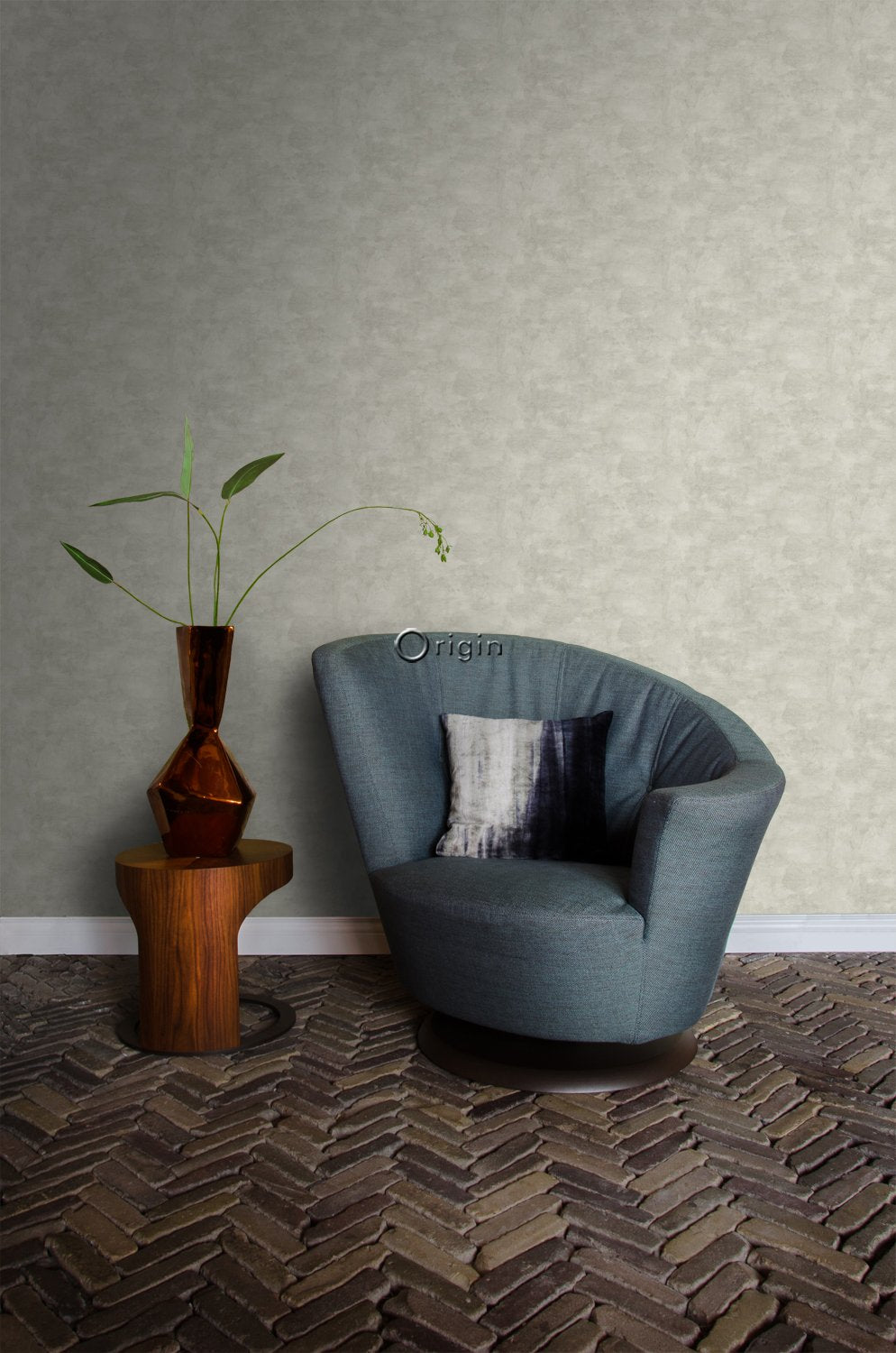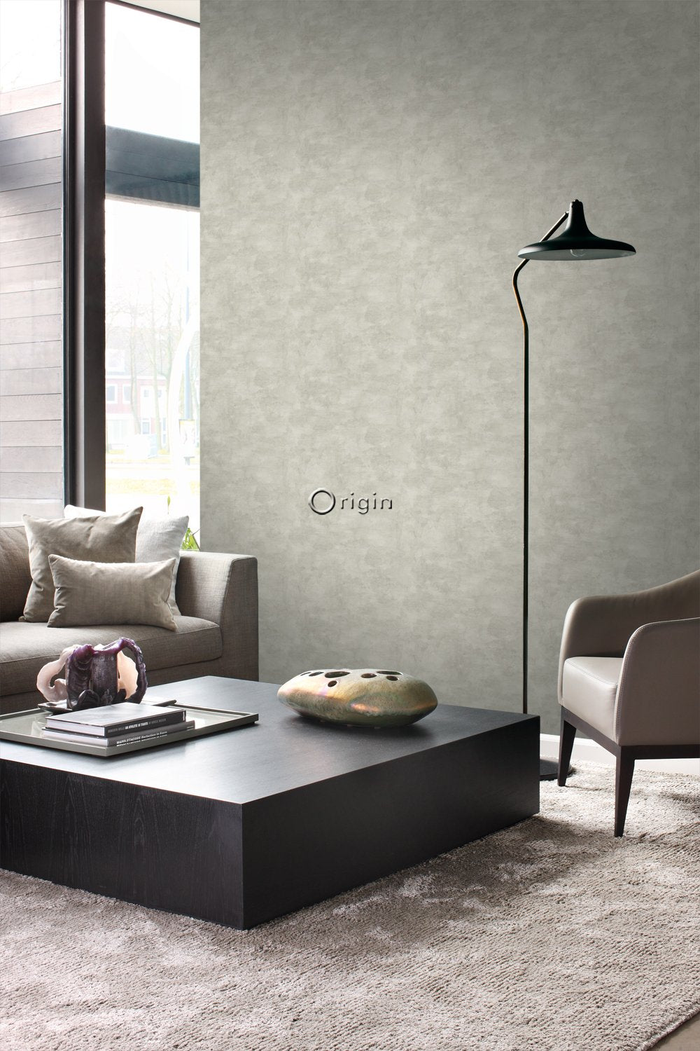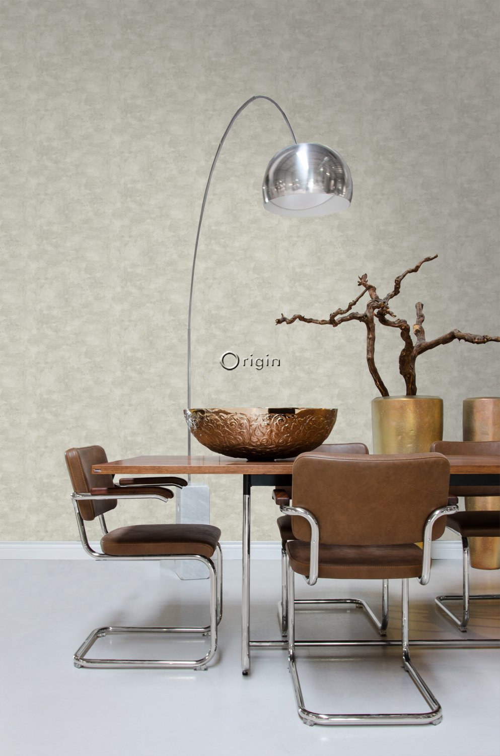 Denna tapet med betonglook i ljusgrått passar perfekt om du vill skapa en industriell look och ge ditt rum en personlig karaktär. Det industriella stilen handlar om att skapa ett tuff, grov look med hjälp av byggnadsmaterial och vintageföremål som både är funktionella och snygga. Varma, neutrala färger passar i allmänhet bäst i en industriell inredning, eftersom de vanligtvis är stora och öppna. Med plyschsoffor, utspridda kuddar och mattor som kontrasterar mot den moderna industriella dekoren, skapar man en visuell balans.