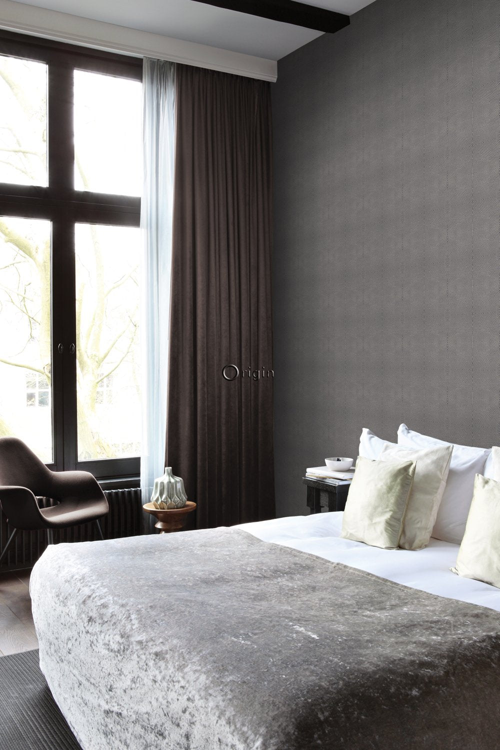 Den här iögonenfallande tapeten med ett djurmönster i mörkbrunt passar perfekt om du vill skapa en unik accentvägg och ger din interiör en exotisk touch. Tapeten har en vacker, matt yta och har dessutom försett med en rik ”eko-struktur”.