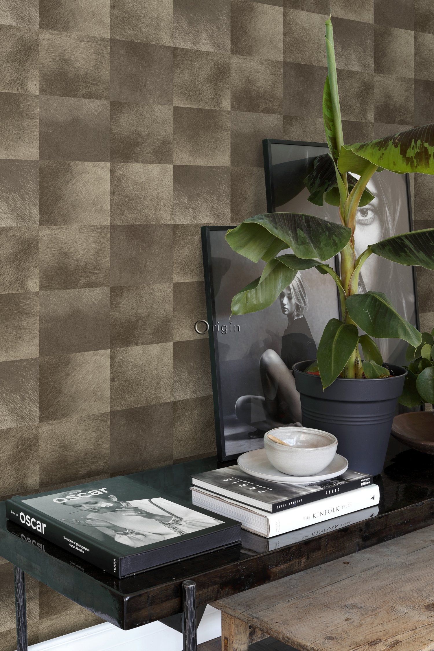 Den här iögonenfallande tapeten med en djurhudstextur i mörkbrunt passar perfekt om du vill skapa en unik accentvägg och ger din interiör en exotisk touch. Tapeten har en vacker, matt yta och har dessutom försetts med en rik ”eko-struktur”.