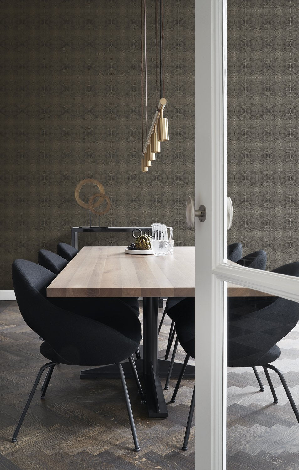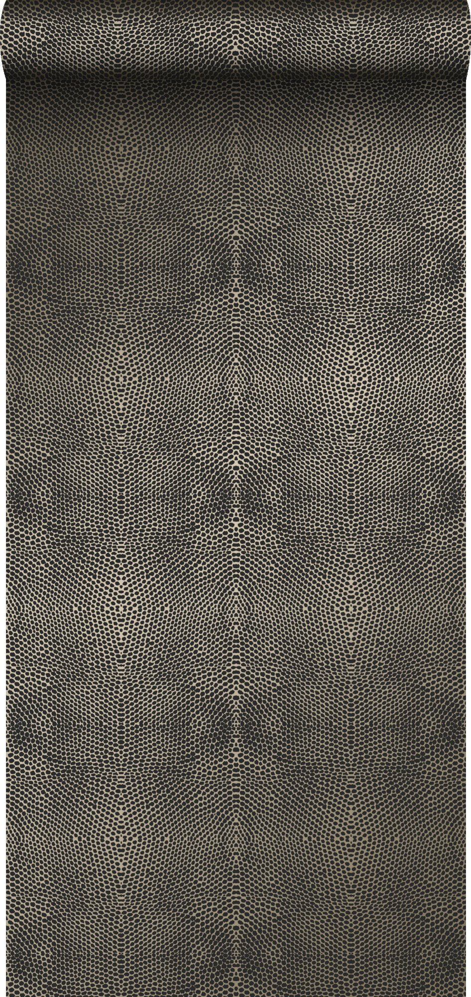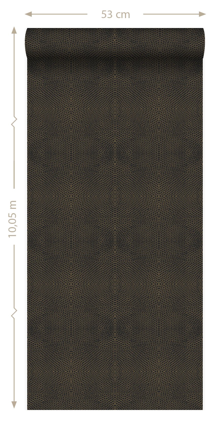 Ge din interiör en exotisk touch med det här fantastiska tapetmönstret. Den här stilfulla tapeten med ett djurmönster i svart och glänsande brons har en vacker, subtilt glänsande effekt och passar perfekt om du vill skapa en imponerande fondvägg.