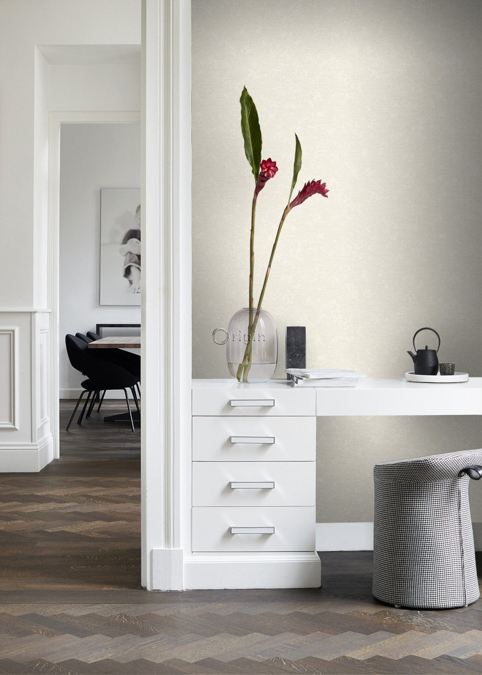 Ge ditt hem den livfulla uppdatering det förtjänar! Denna eleganta tapet med enfärgad i benfärgat och subtila glänsande detaljer utstrålar värme, lyx och raffinemang.