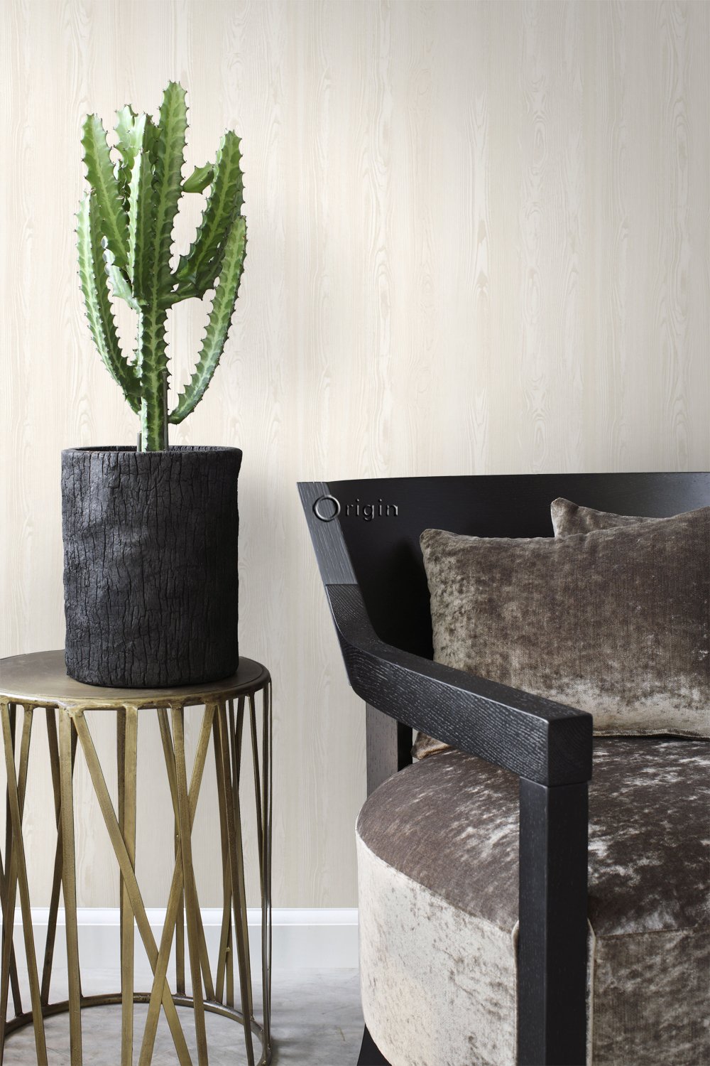 Ge ditt hem en extra naturlig touch och skapa en rustik atmosfär med den här den eleganta, naturliga tapetdesignen med träeffekt i beige. Tapeten har en vacker, matt yta och passar perfekt om du vill skapa en stilfull fondvägg. Försedd med en taktil eko-struktur utstrålar detta fantastiska mönster värme, lyx och raffinemang.