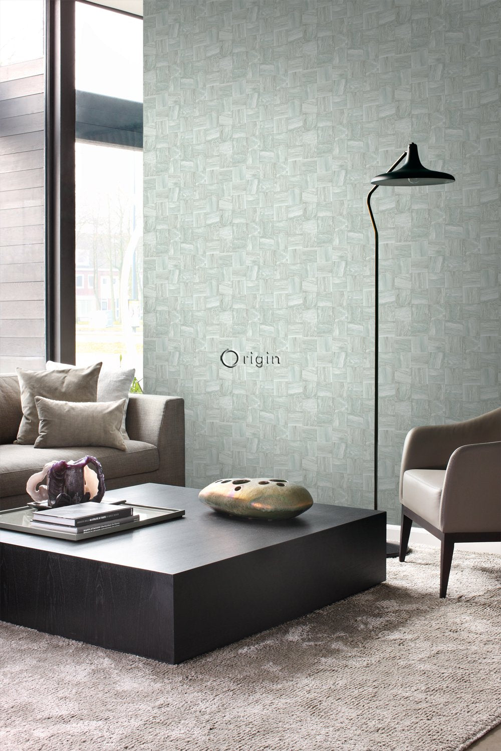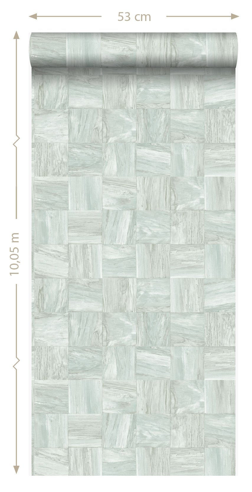 Ge din interiör en varm och personlig känsla med den här iögonenfallande tapeten med fyrkantig bitar av träskräp i ljust grågrönt. Tapeten har en vacker, matt yta och passar perfekt om du vill skapa en stilfull fondvägg. Försedd med en taktil eko-struktur utstrålar detta fantastiska mönster värme, lyx och raffinemang.