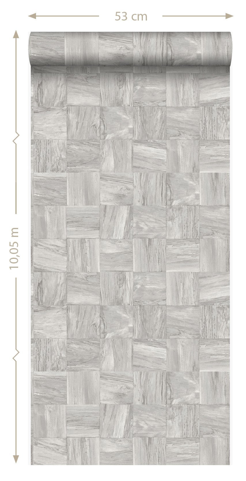 Ge din interiör en varm och personlig känsla med den här iögonenfallande tapeten med fyrkantig bitar av träskräp i ljusgrått. Tapeten har en vacker, matt yta och passar perfekt om du vill skapa en stilfull fondvägg. Försedd med en taktil eko-struktur utstrålar detta fantastiska mönster värme, lyx och raffinemang.