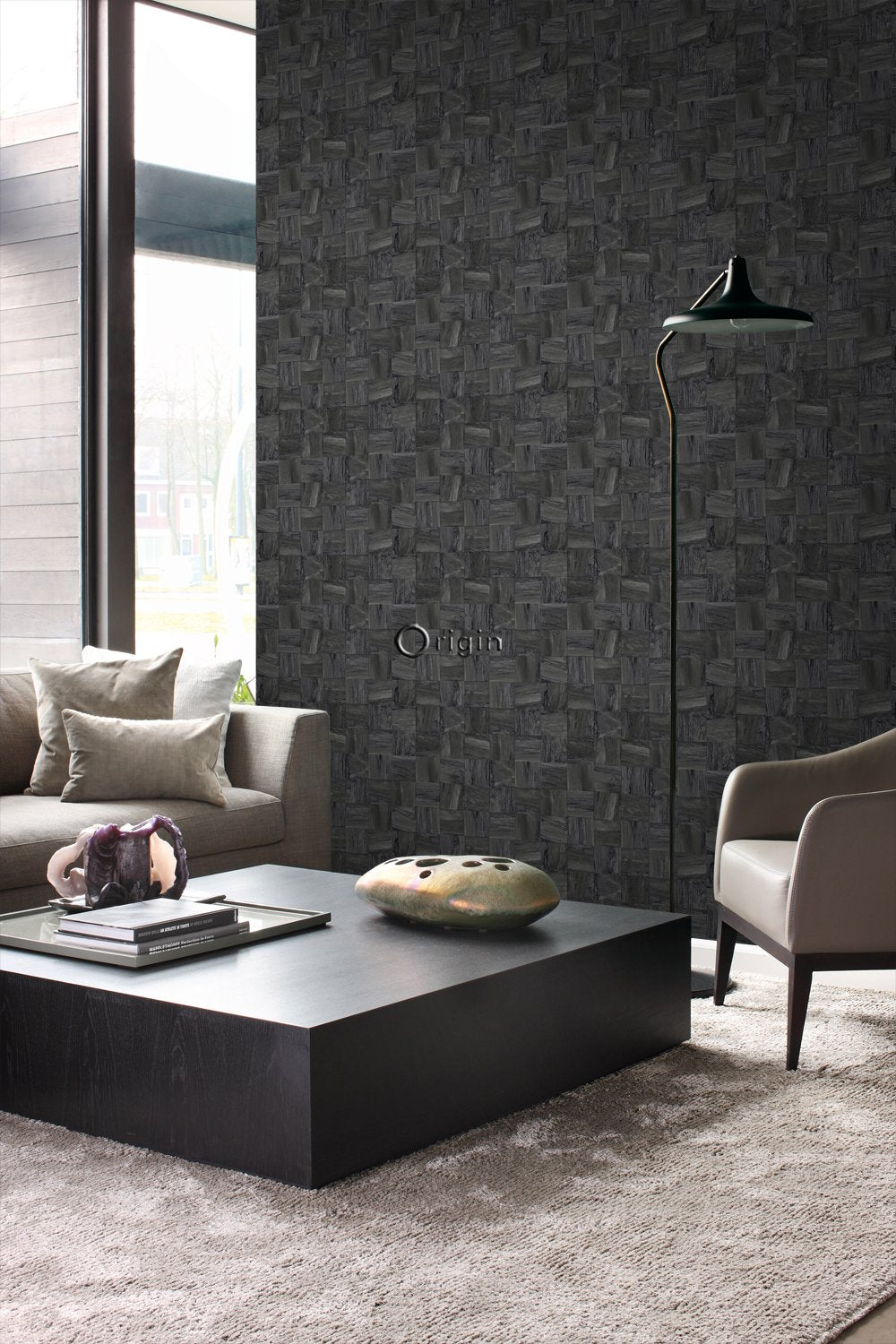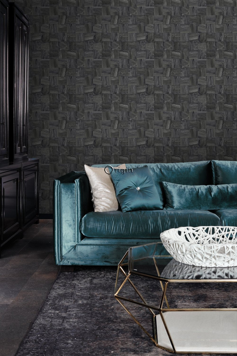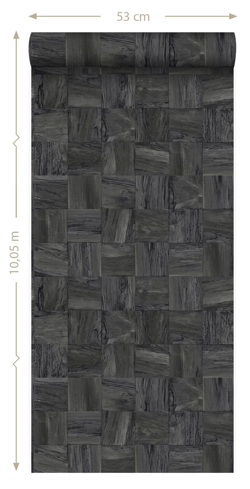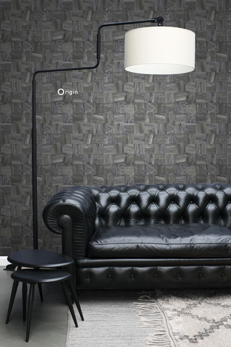 Ge din interiör en varm och personlig känsla med den här iögonenfallande tapeten med fyrkantig bitar av träskräp i svart. Tapeten har en vacker, matt yta och passar perfekt om du vill skapa en stilfull fondvägg. Försedd med en taktil eko-struktur utstrålar detta fantastiska mönster värme, lyx och raffinemang.