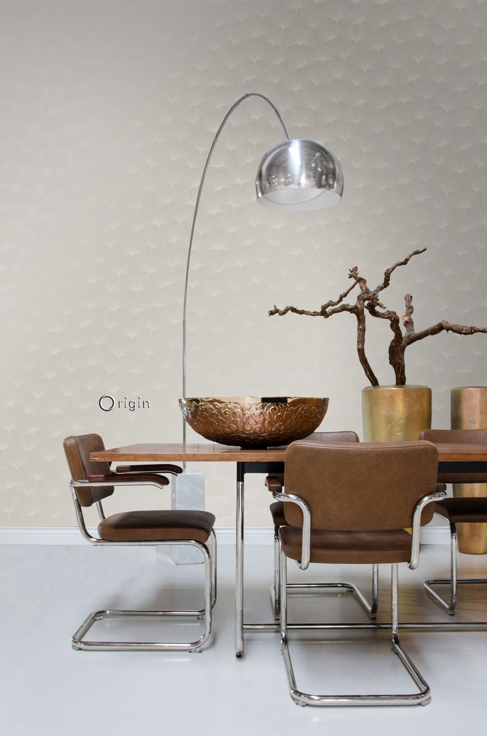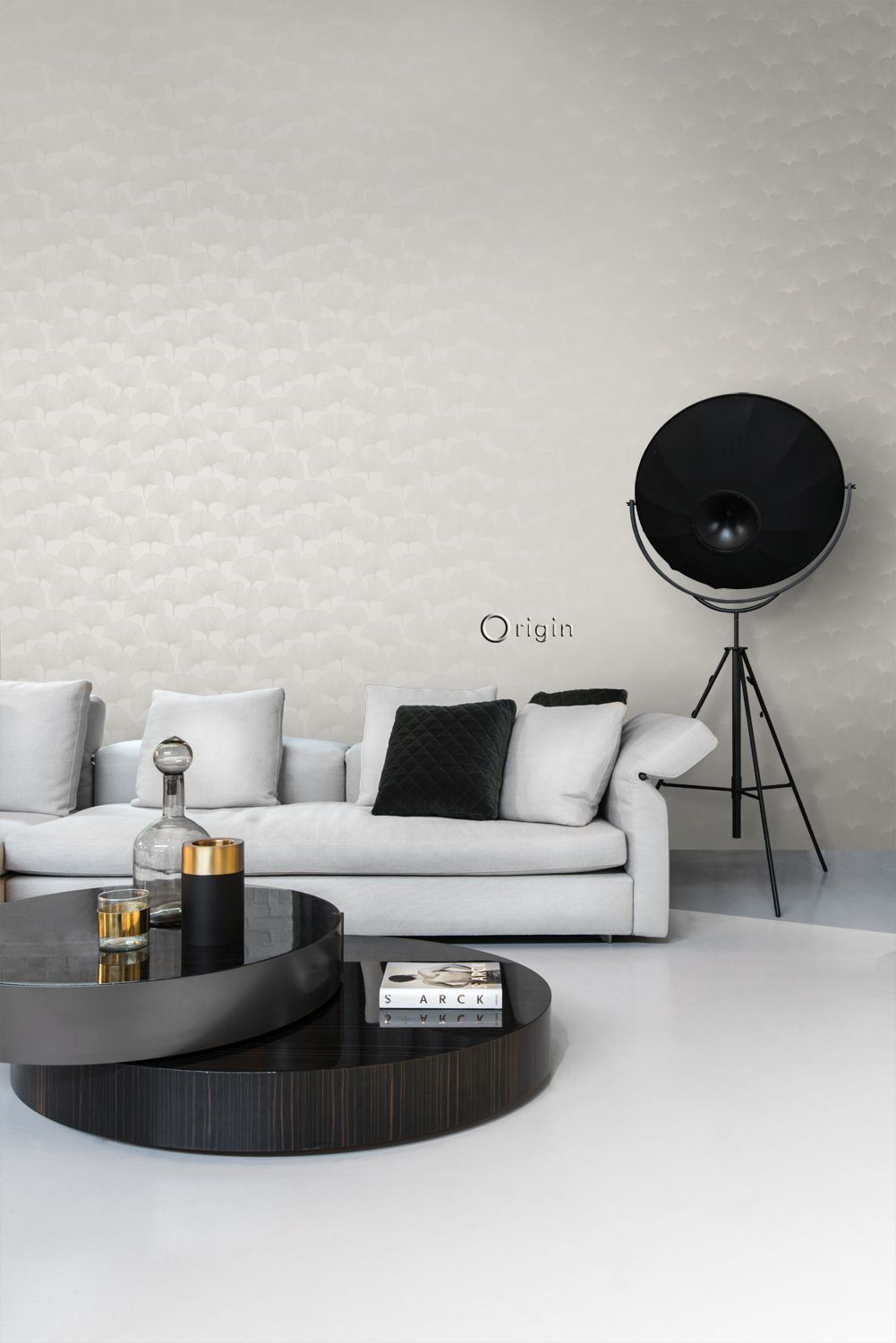 Smycka dina väggar med denna eleganta, iögonenfallande tapet med gingkoblad i glänsande varmt grått. Den spännande kontrasten mellan det matta mönstret och den silkesliknande bakgrunden skapar en livfull dynamik och gör mönstret till en fest för ögat. Perfekt för en attraktiv accentvägg och ett subtilt sätt att ge din interiör lite glamour.