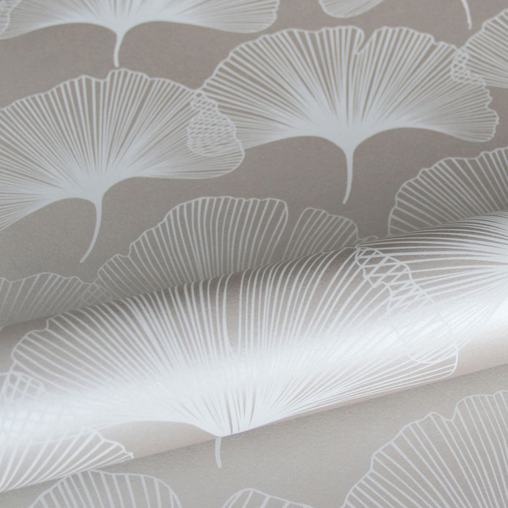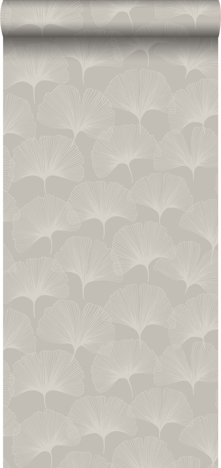 Origin tapet gingkoblad - glänsande varmt grått