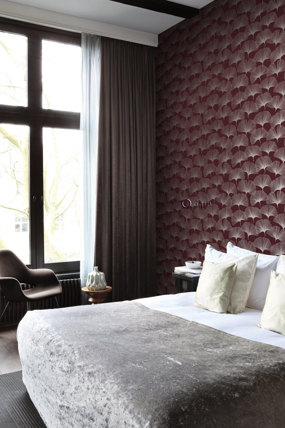 Smycka dina väggar med denna eleganta, iögonenfallande tapet med gingkoblad i rött och guld. Den spännande kontrasten mellan det blanka motivet och den extra matta ytan skapar en livfull dynamik och gör mönstret till en fest för ögat. Perfekt för en attraktiv accentvägg och ett subtilt sätt att ge din interiör lite glamour.