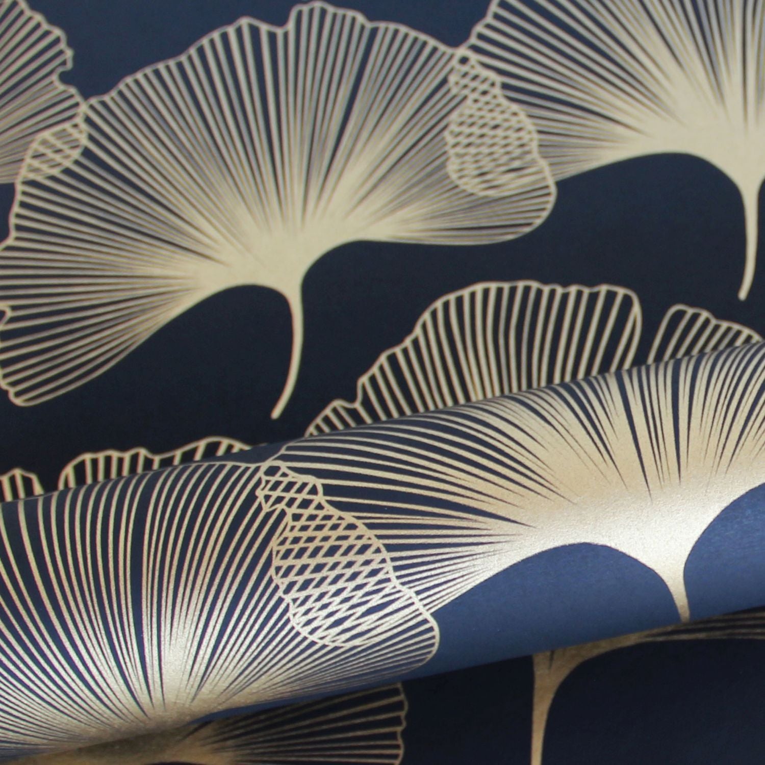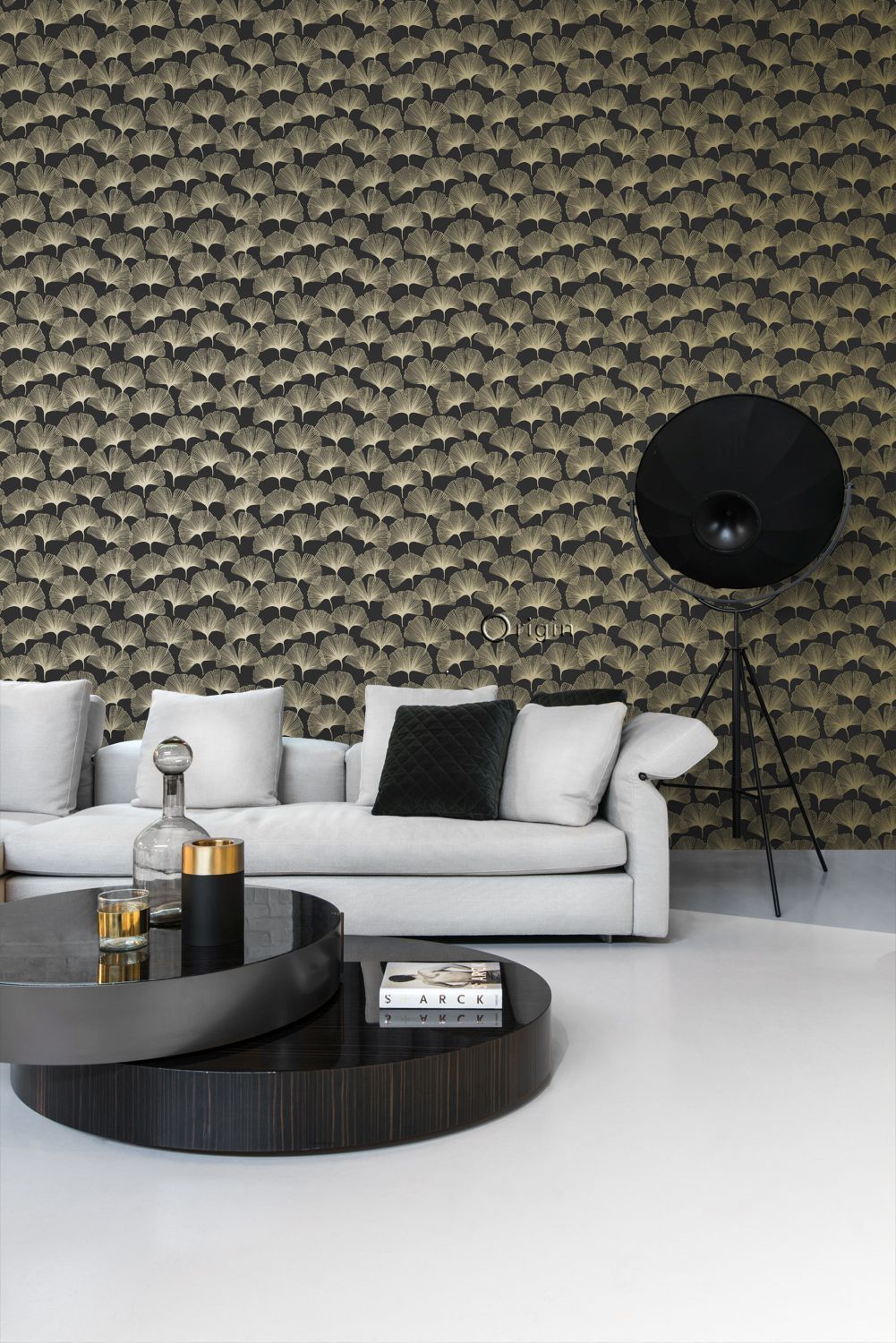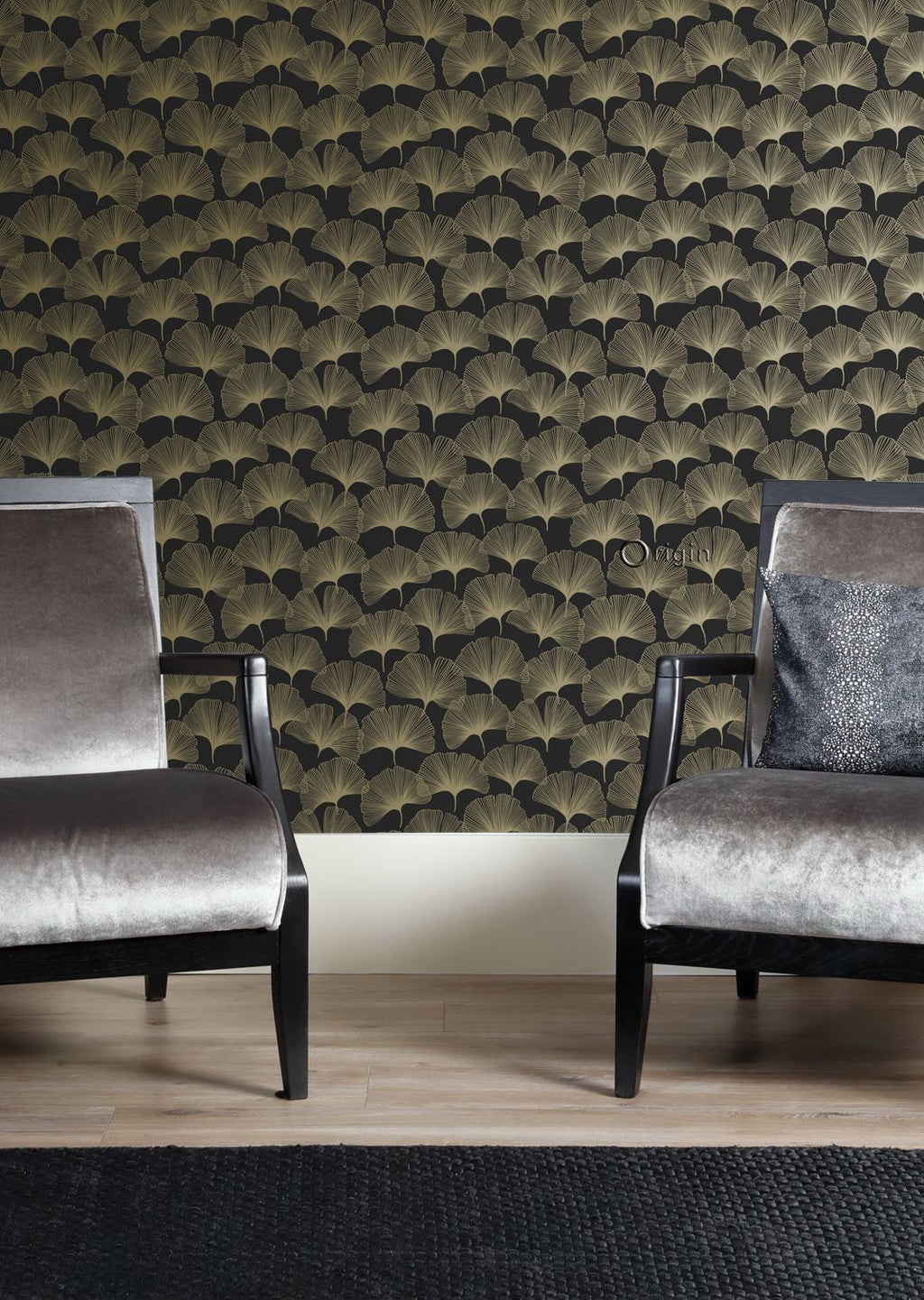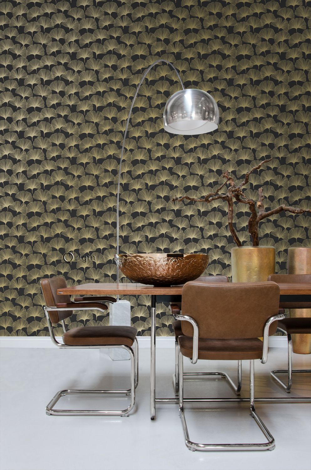 Smycka dina väggar med denna eleganta, iögonenfallande tapet med gingkoblad i svart och guld. Den spännande kontrasten mellan det blanka guldmönstret och den extra matta ytan skapar en livfull dynamik och gör mönstret till en fest för ögat. Perfekt för en attraktiv accentvägg och ett subtilt sätt att ge din interiör lite glamour.