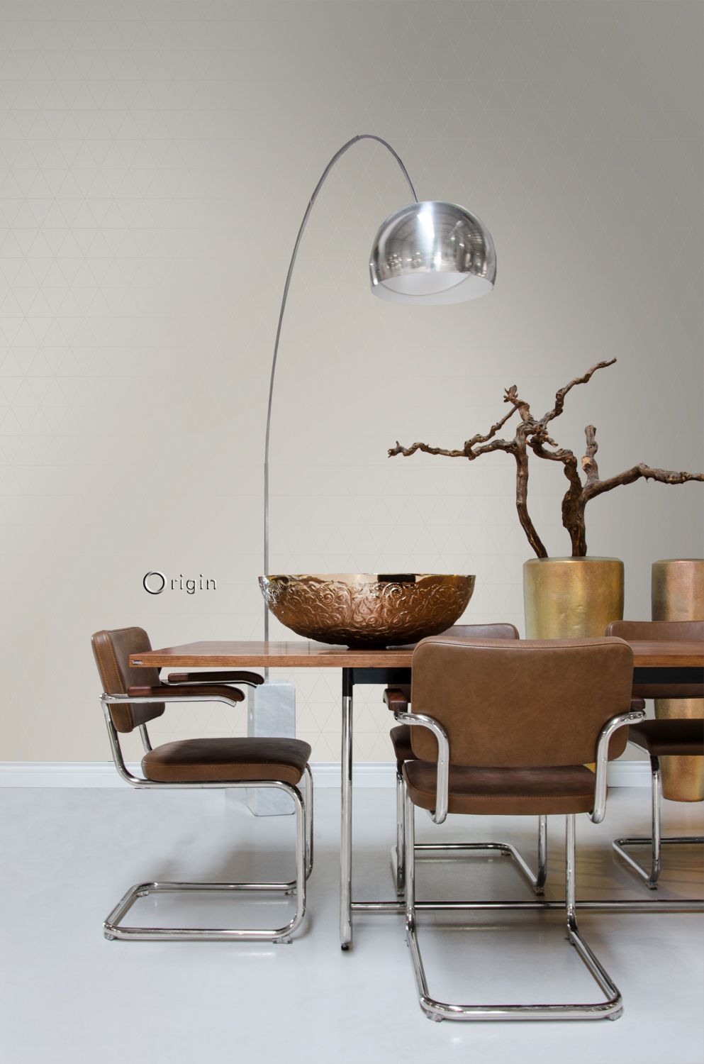Smycka dina väggar med denna eleganta, iögonenfallande tapet med grafiska trianglar i grått. Den spännande kontrasten mellan det matta mönstret och den silkesliknande bakgrunden skapar en livfull dynamik och gör mönstret till en fest för ögat. Perfekt för en attraktiv accentvägg och ett subtilt sätt att ge din interiör lite glamour.