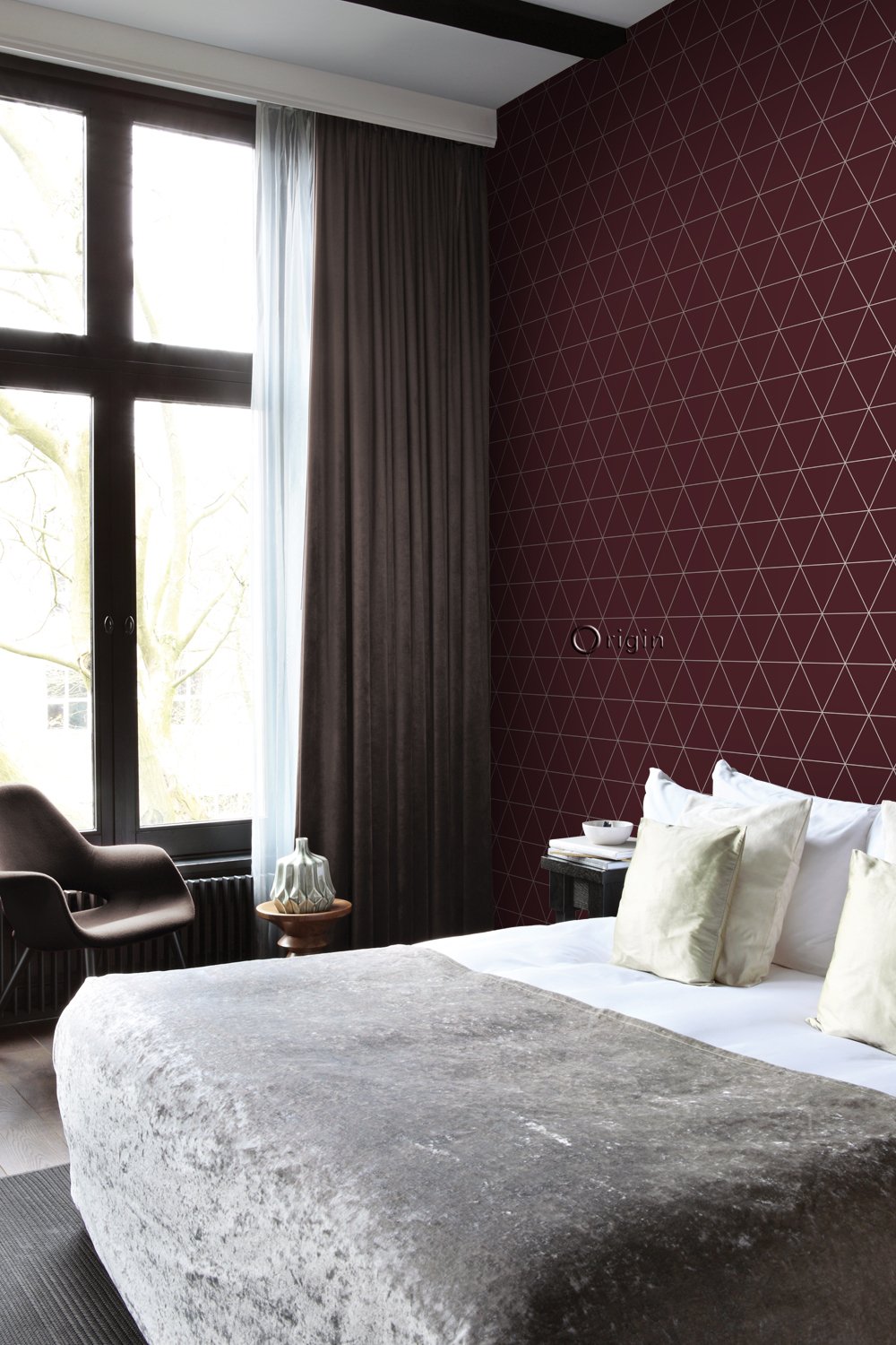 Smycka dina väggar med denna eleganta, iögonenfallande tapet med grafiska trianglar i rött. Den spännande kontrasten mellan blanka guldränder och den matta ytan skapar en livfull dynamik och gör mönstret till en fest för ögat. Perfekt för en attraktiv accentvägg och ett subtilt sätt att ge din interiör lite glamour.