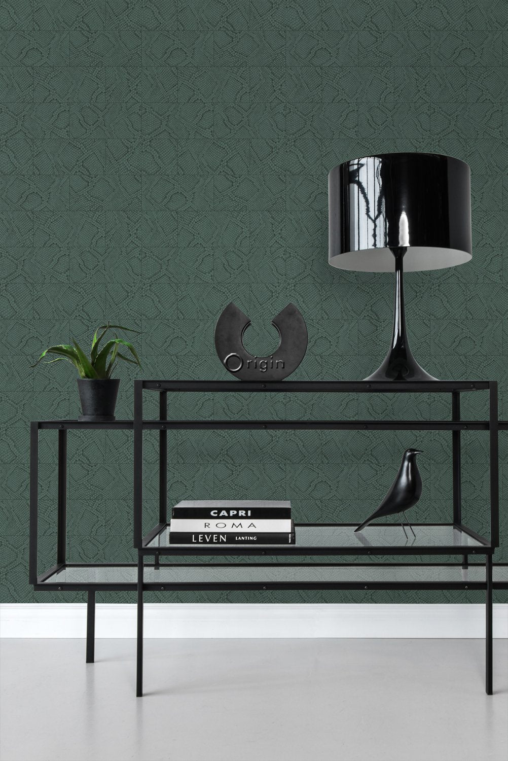 Origin tapet kakelmotiv med ormskinn - petroleum