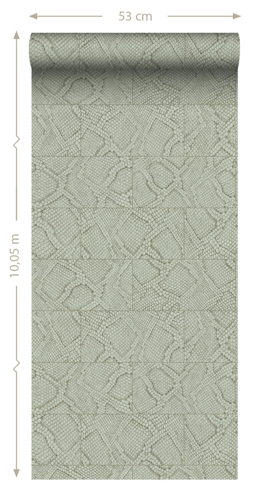 Ge din interiör en exotisk touch med det här fantastiska tapetmönstret. Den här stilfulla tapeten med ett ormskinnsmönster i blekgrått har en vacker, matt yta och den passar perfekt om du vill skapa en imponerande fondvägg.