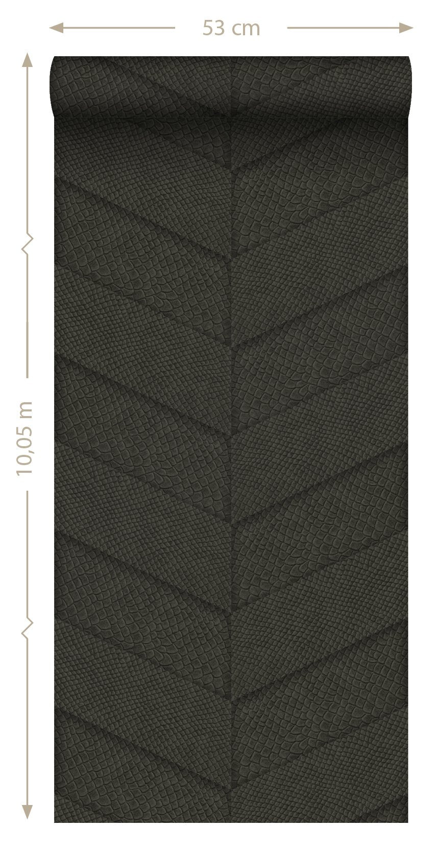 Ge din interiör en exotisk touch med det här fantastiska tapetmönstret. Den här stilfulla tapeten med ett ormskinnsmönster i mörkbrunt har en vacker, matt yta och den passar perfekt om du vill skapa en imponerande fondvägg.