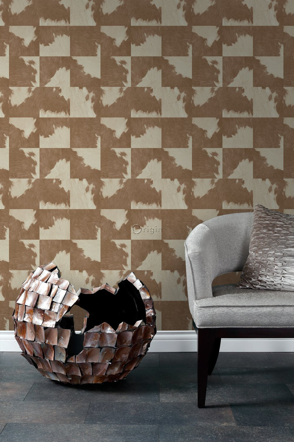 Origin tapet kohud look - brunt och vitt