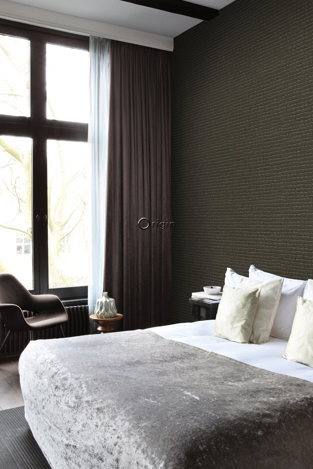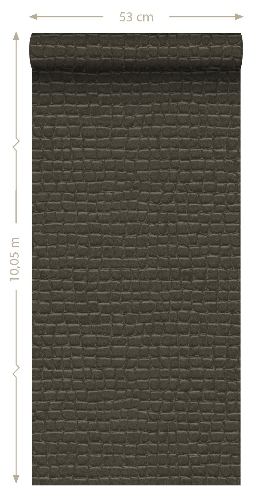Ge din interiör en exotisk touch med det här fantastiska tapetmönstret. Den här stilfulla tapeten med krokodilhud i mörkbrunt har en vacker, matt yta och den passar perfekt om du vill skapa en imponerande fondvägg.