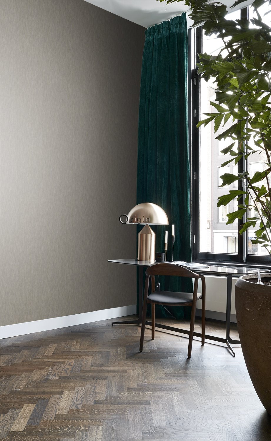 Den här stilfulla tapeten med en linnestruktur i glänsande brunt har en vacker, subtil, glänsande effekt. Försedd med en taktil eko-struktur utstrålar detta fantastiska mönster värme, lyx och raffinemang.