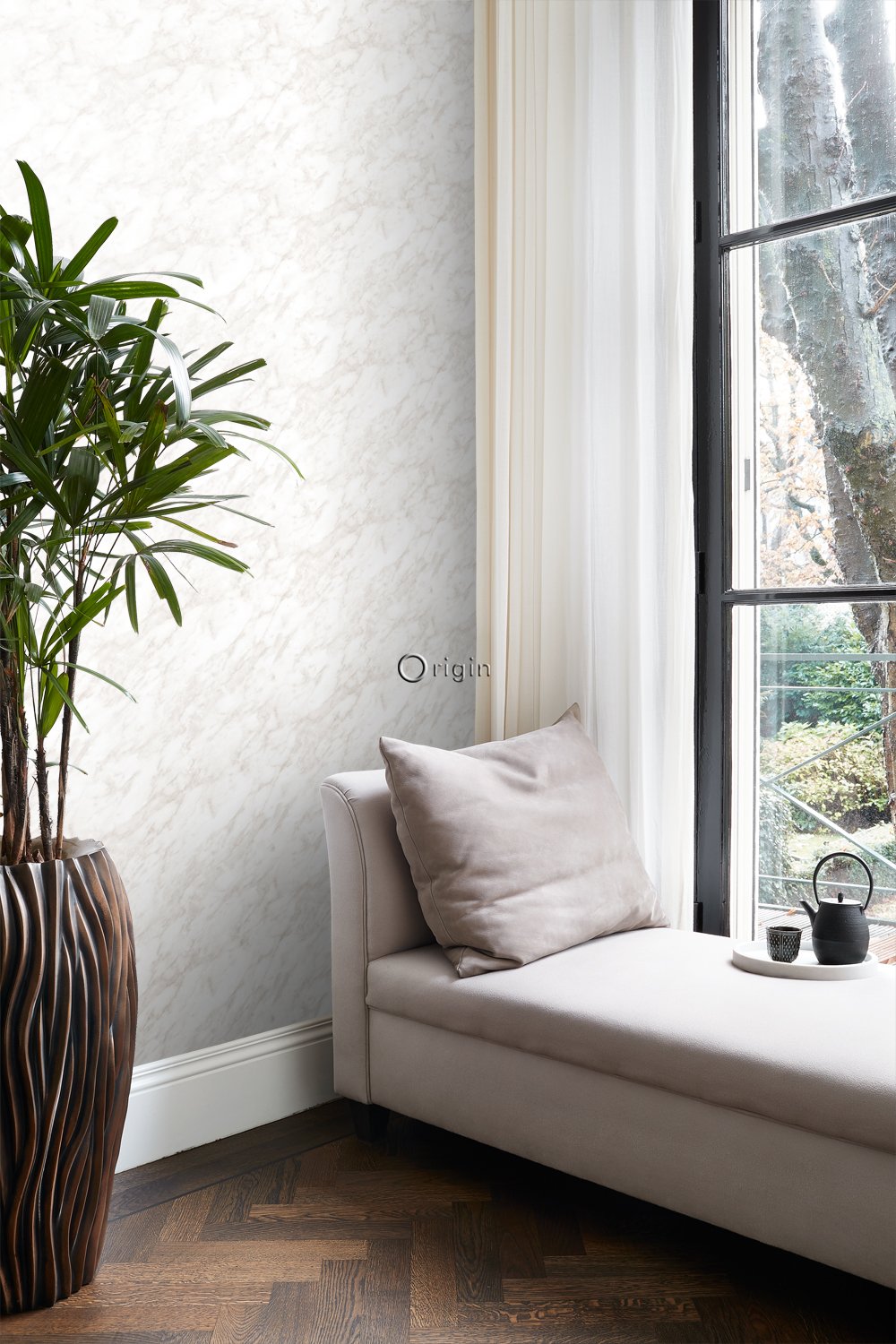 Ta med naturen in i ditt hem med denna iögonenfallande tapet med marmoreffekt i ljusbeige. Tapeten har en vacker sidenbeläggning och skapar en varm och lyxig atmosfär i din interiör.