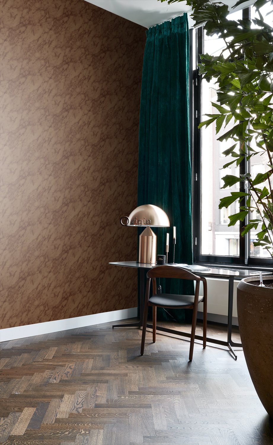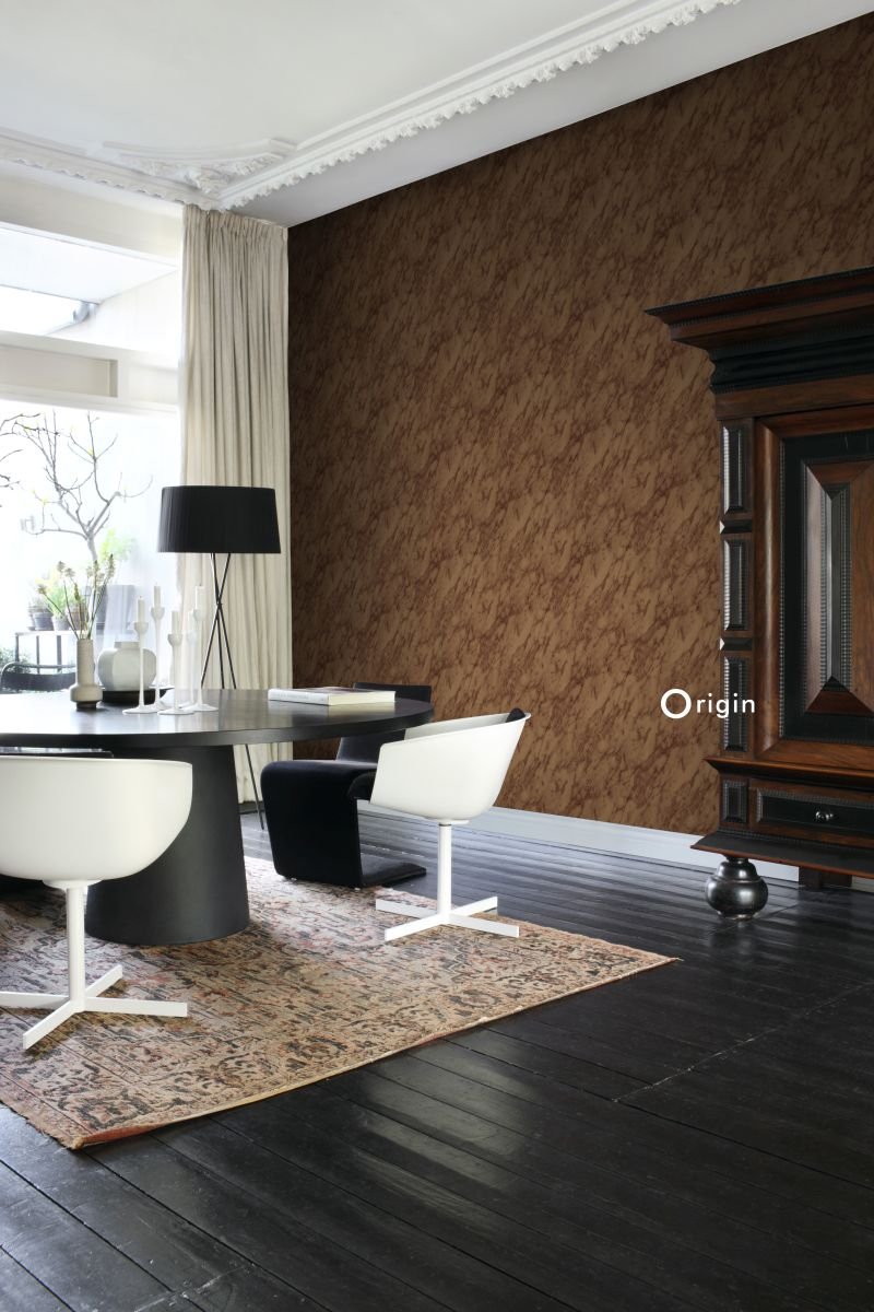 Ta med naturen in i ditt hem med denna iögonenfallande tapet med marmoreffekt i rostbrunt. Tapeten har en vacker sidenbeläggning och skapar en varm och lyxig atmosfär i din interiör.