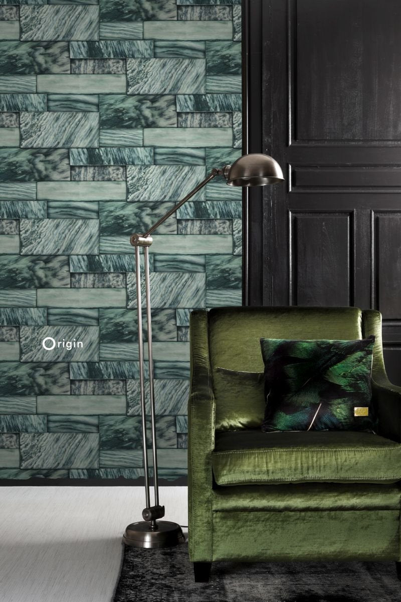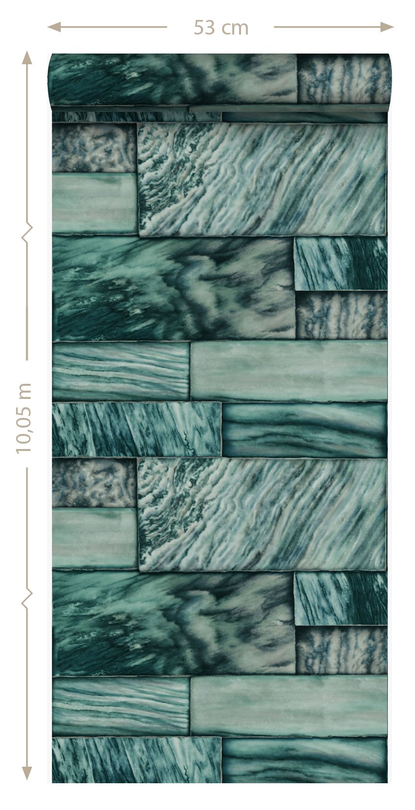 Ta med naturen in i ditt hem med denna iögonenfallande tapet med marmoreffekt i smaragdgrönt. Tapeten har en vacker sidenbeläggning och skapar en varm och lyxig atmosfär i din interiör.