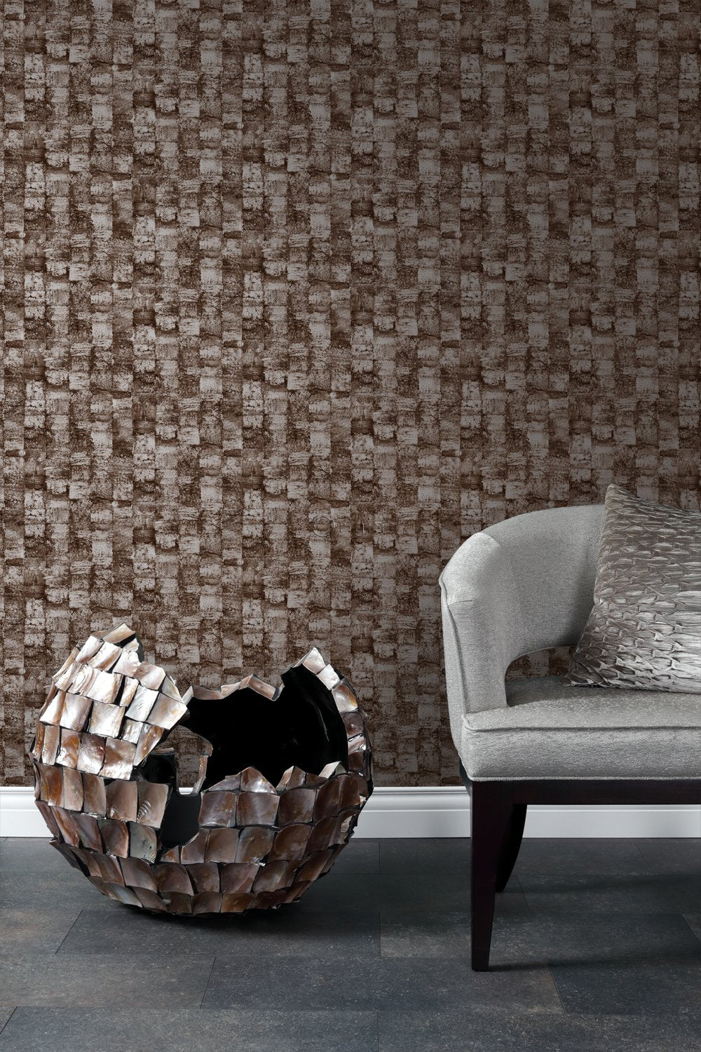 Blås nytt liv i dina väggar med den här eleganta tapeten med en subtil textur i brunt De subtila blanka elementen och den glänsande ytan ger tapeten ett raffinerat och lyxigt utseende. Tapeten utstrålar tidlös elegans och skapar en ger din interiör stil och elegans.