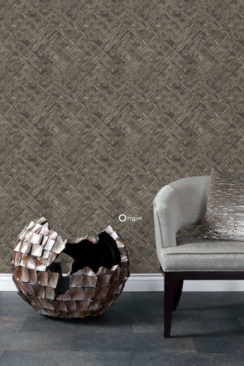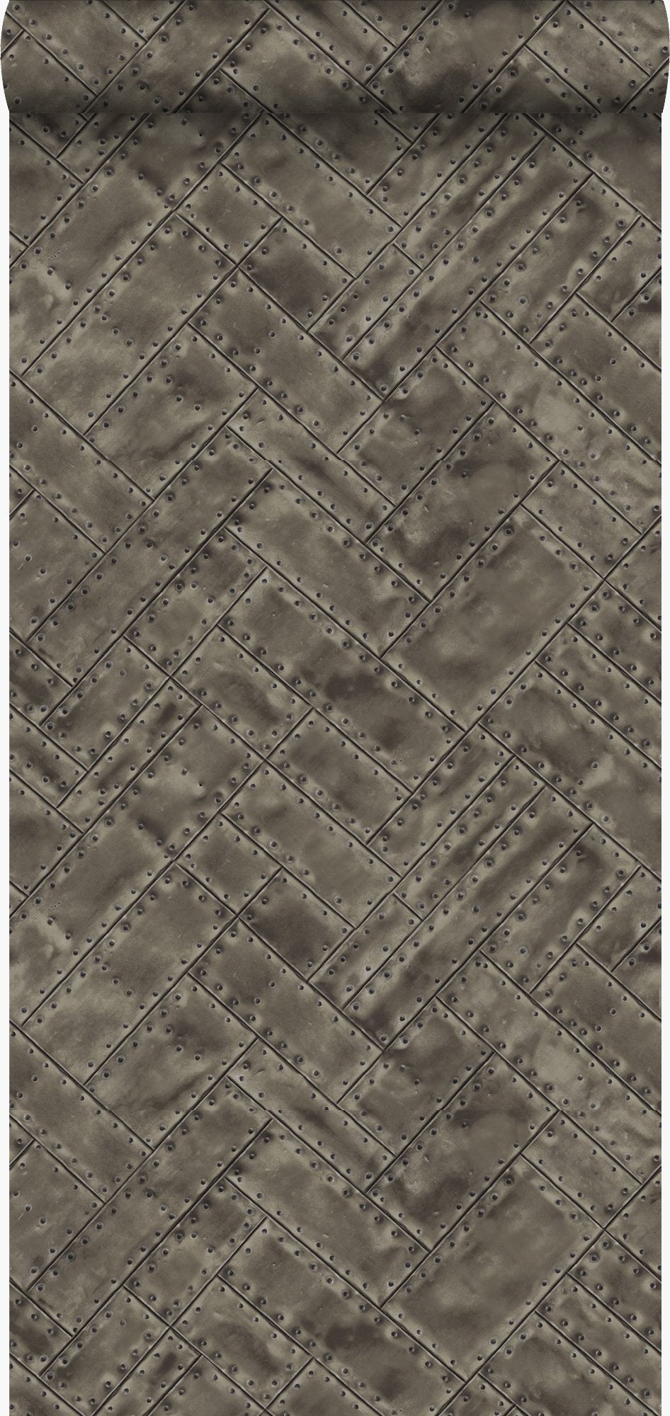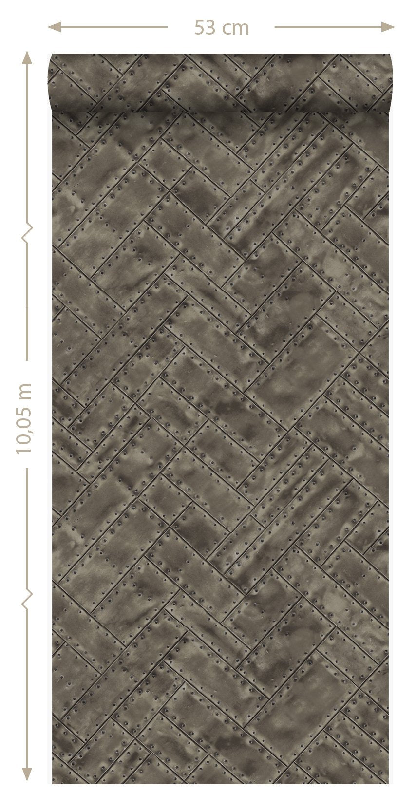 Skapa en effektfull vägg eller betona ett arkitektoniskt inslag i interiören med den här frapperande tapetdesignen med metallplåtar i brunt. De glänsande metallinslagen ger tapeten en extraordinär och lyxig utstrålning.