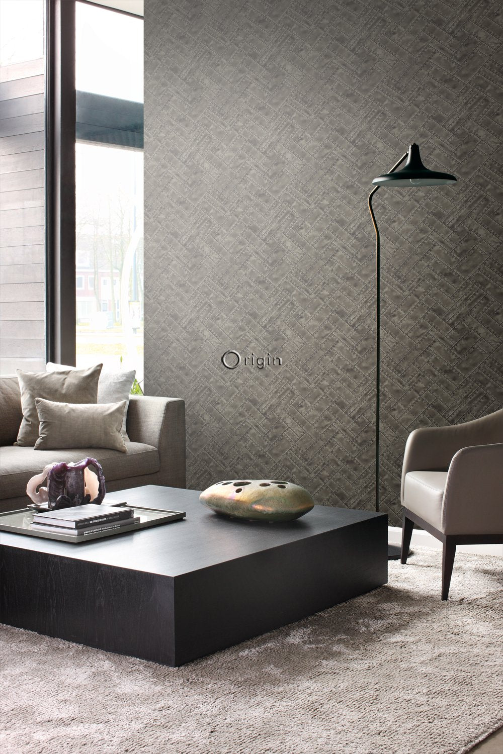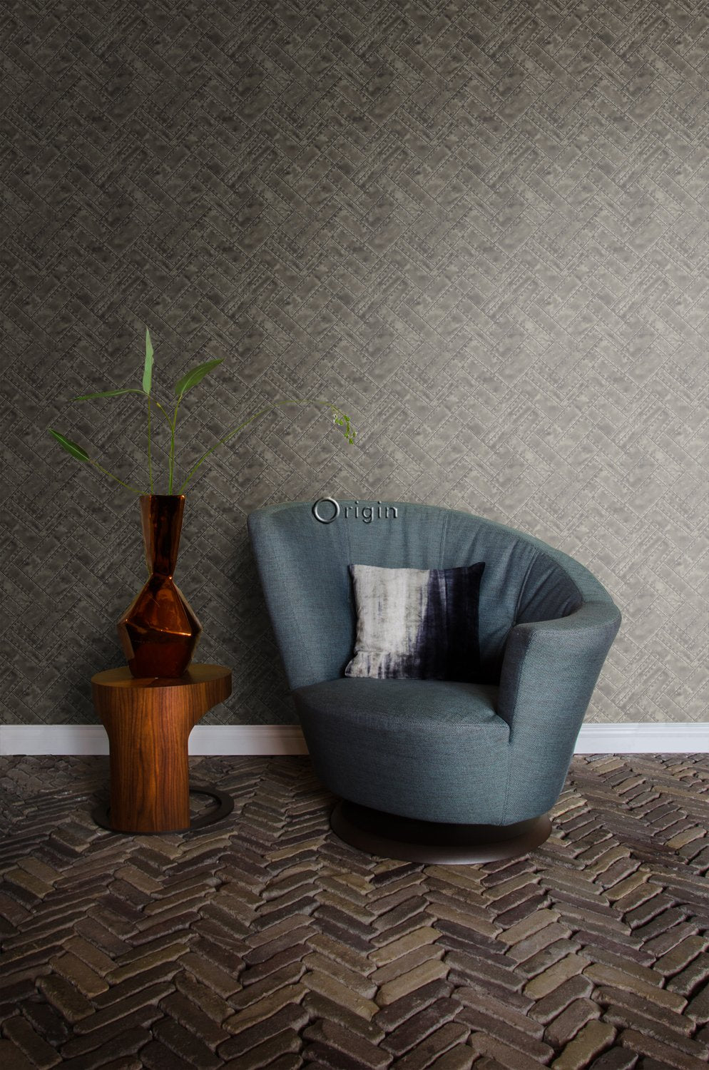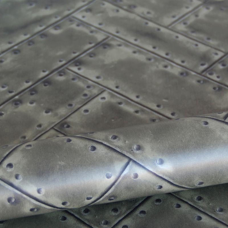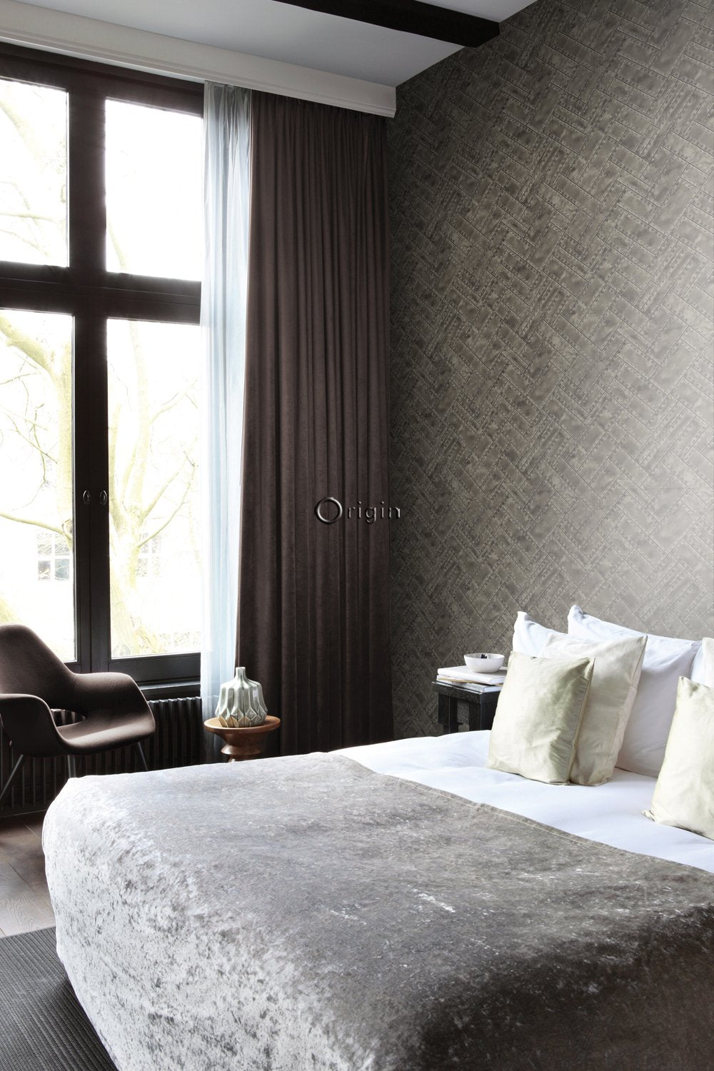 Skapa en effektfull vägg eller betona ett arkitektoniskt inslag i interiören med den här frapperande tapetdesignen med metallplåtar i brunt. De glänsande metallinslagen ger tapeten en extraordinär och lyxig utstrålning.