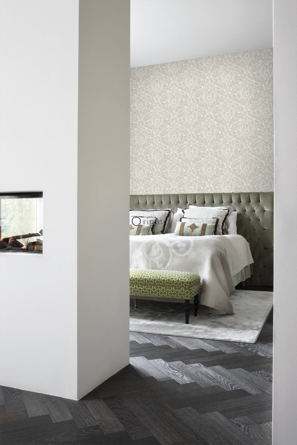 Smycka dina väggar med denna eleganta tapet med ornament i mörkbeige. Tapeten har ett vackert matt yta och passar perfekt om du vill skapa en stilfull fondvägg i en modern-klassisk interiör. Försedd med en taktil eko-struktur utstrålar detta fantastiska mönster värme, lyx och raffinemang.