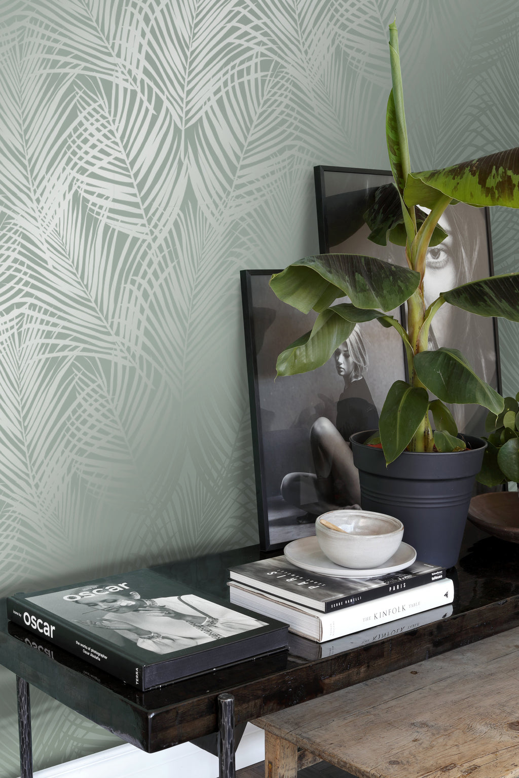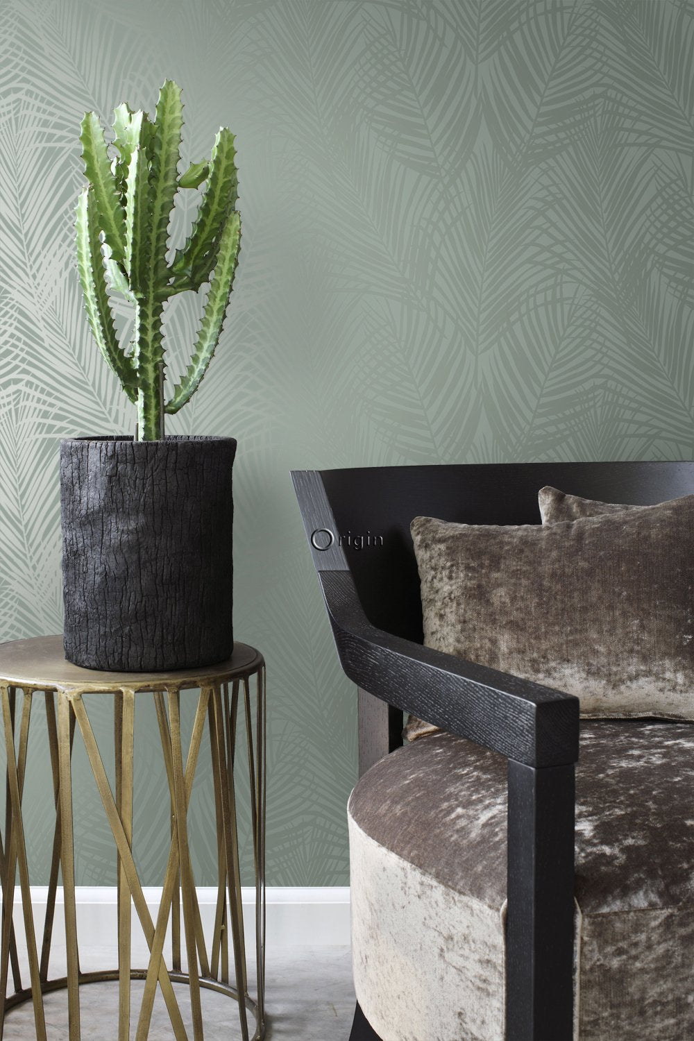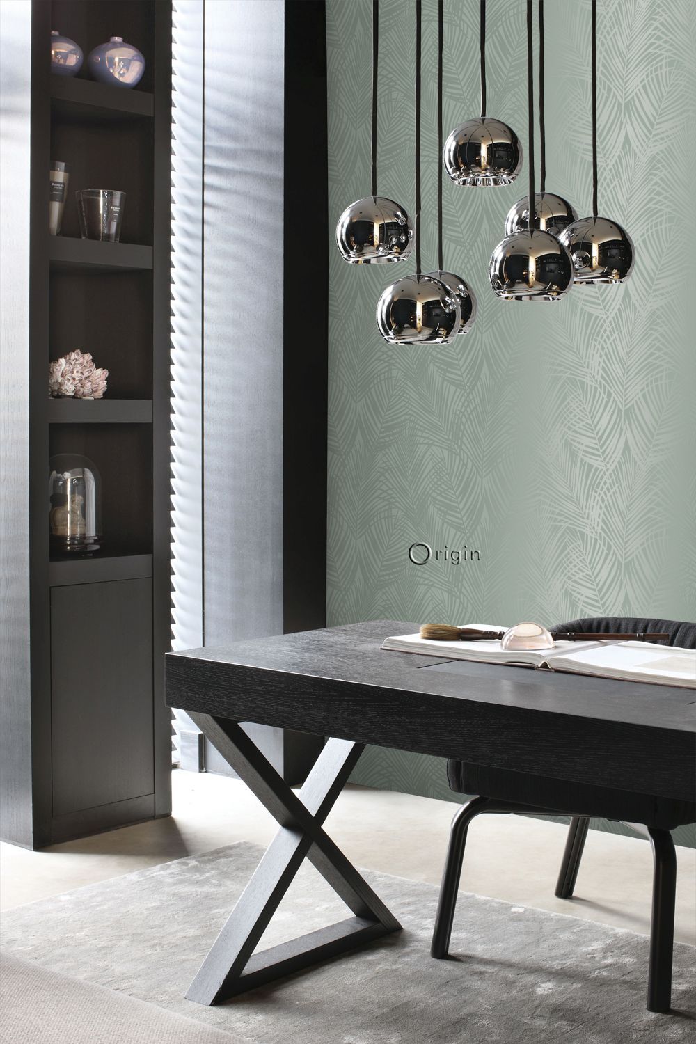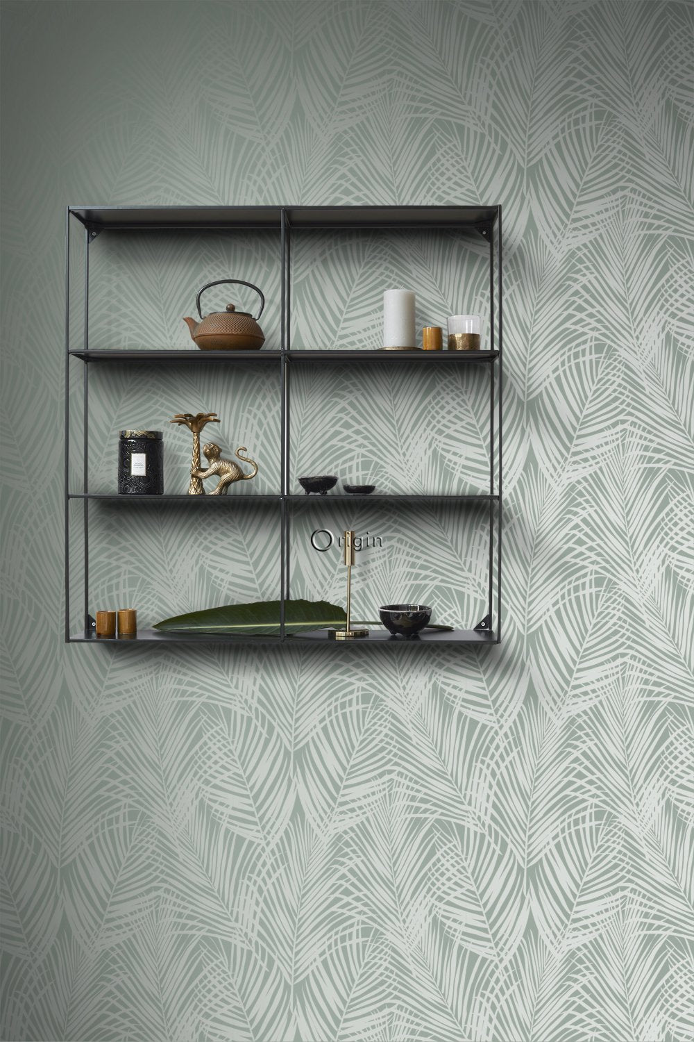 Smycka dina väggar med denna eleganta, iögonenfallande tapet med palmblad i grågrönt. Den spännande kontrasten mellan det blanka motivet och den extra matta ytan skapar en livfull dynamik och gör mönstret till en fest för ögat. Perfekt för en attraktiv accentvägg och ett subtilt sätt att ge din interiör lite glamour.