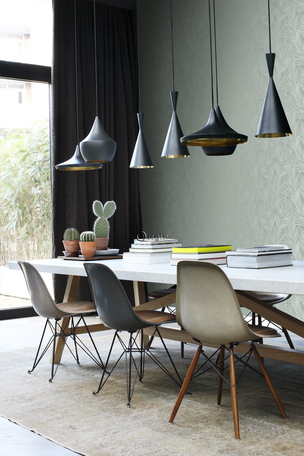 Enfärgade och geometriska tapeter i underbar harmoni med djur och natur. Iögonfallande och eleganta tapeter som elegant förvandlar din interiör.