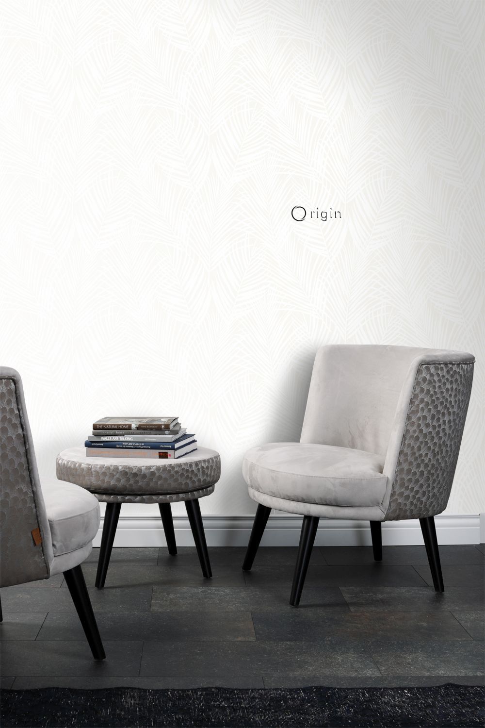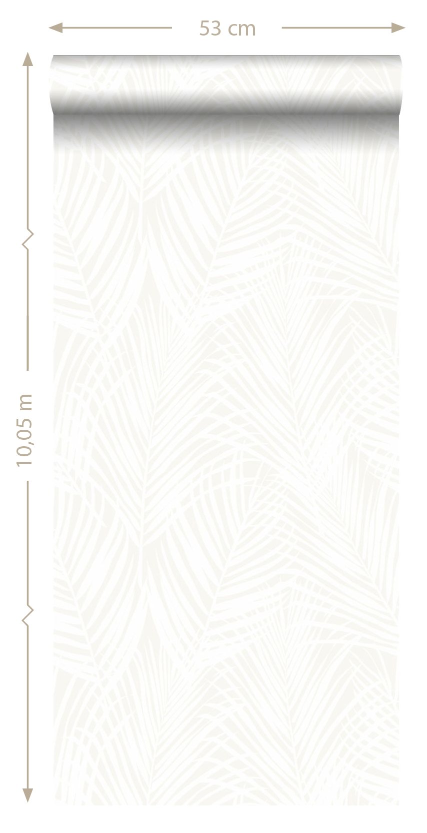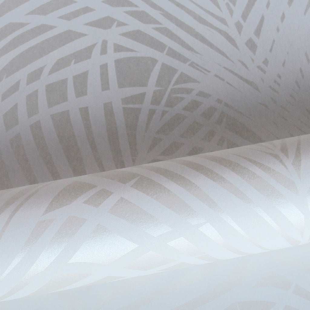 Smycka dina väggar med denna eleganta, iögonenfallande tapet med palmblad i vitt. Den spännande kontrasten mellan det matta mönstret och den silkesliknande bakgrunden skapar en livfull dynamik och gör mönstret till en fest för ögat. Perfekt för en attraktiv accentvägg och ett subtilt sätt att ge din interiör lite glamour.