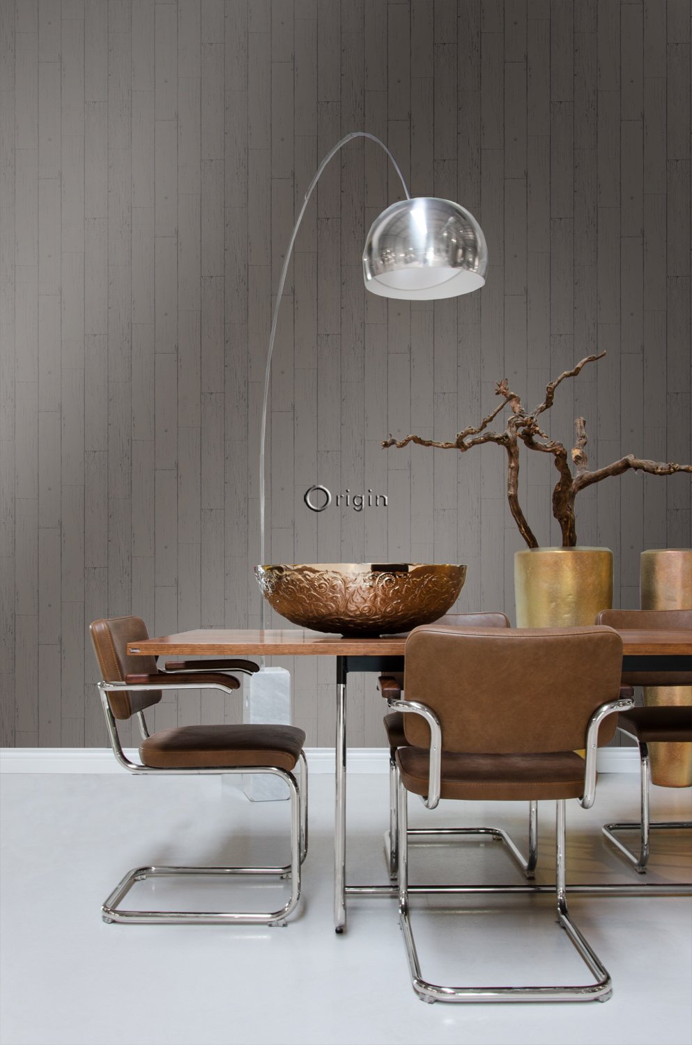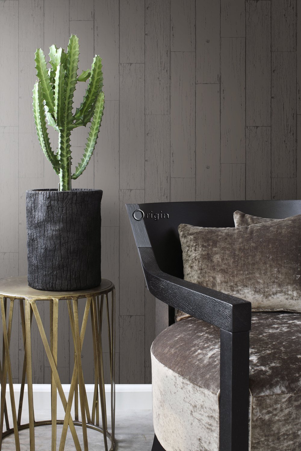 Skapa en lugn stämning med den här eleganta, naturliga tapetdesignen med träeffekt i mörkgrått. Tapeten har vackra, subtilt skimrande inslag och passar perfekt för att skapa en stilfull fondvägg. Försedd med en taktil eko-struktur utstrålar detta fantastiska mönster värme, lyx och raffinemang.