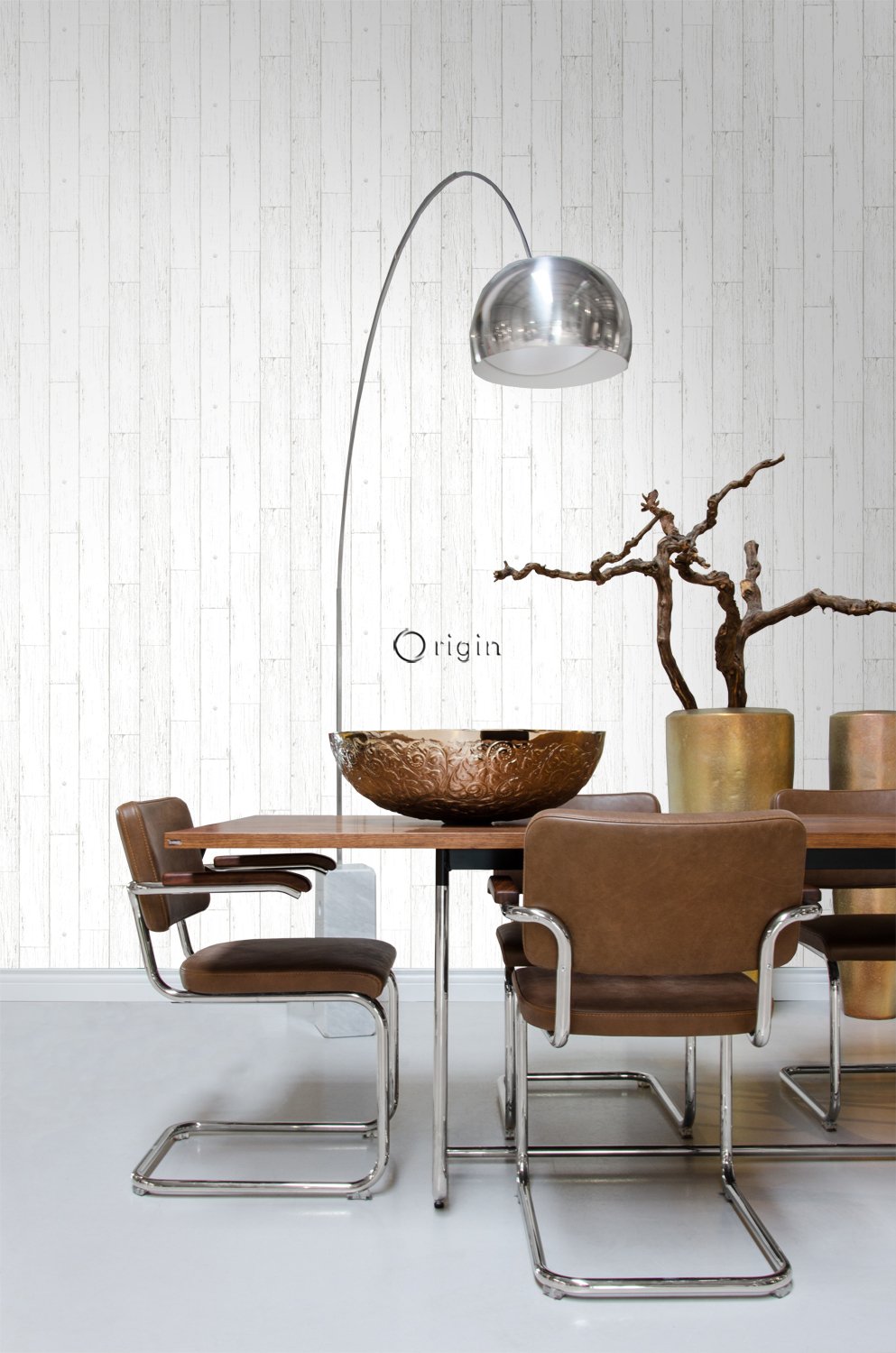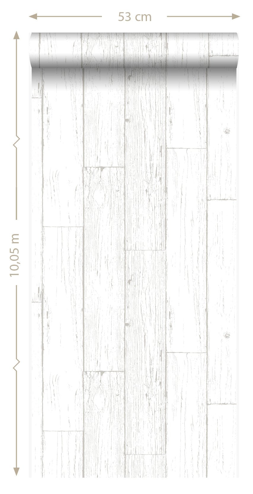 Skapa en lugn stämning med den här eleganta, naturliga tapetdesignen med träeffekt i benvitt. Tapeten har vackra, subtilt skimrande inslag och passar perfekt för att skapa en stilfull fondvägg. Försedd med en taktil eko-struktur utstrålar detta fantastiska mönster värme, lyx och raffinemang.