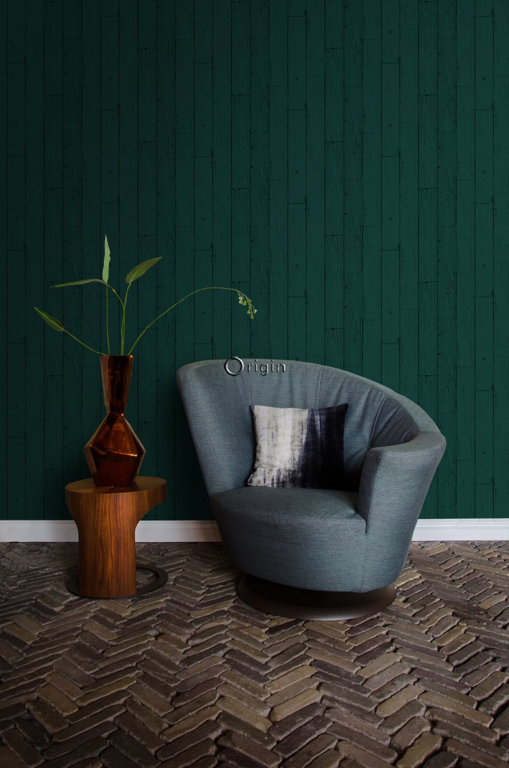 Skapa en lugn stämning med den här eleganta, naturliga tapetdesignen med träeffekt i smaragdgrönt. Tapeten har vackra, subtilt skimrande inslag och passar perfekt för att skapa en stilfull fondvägg. Försedd med en taktil eko-struktur utstrålar detta fantastiska mönster värme, lyx och raffinemang.