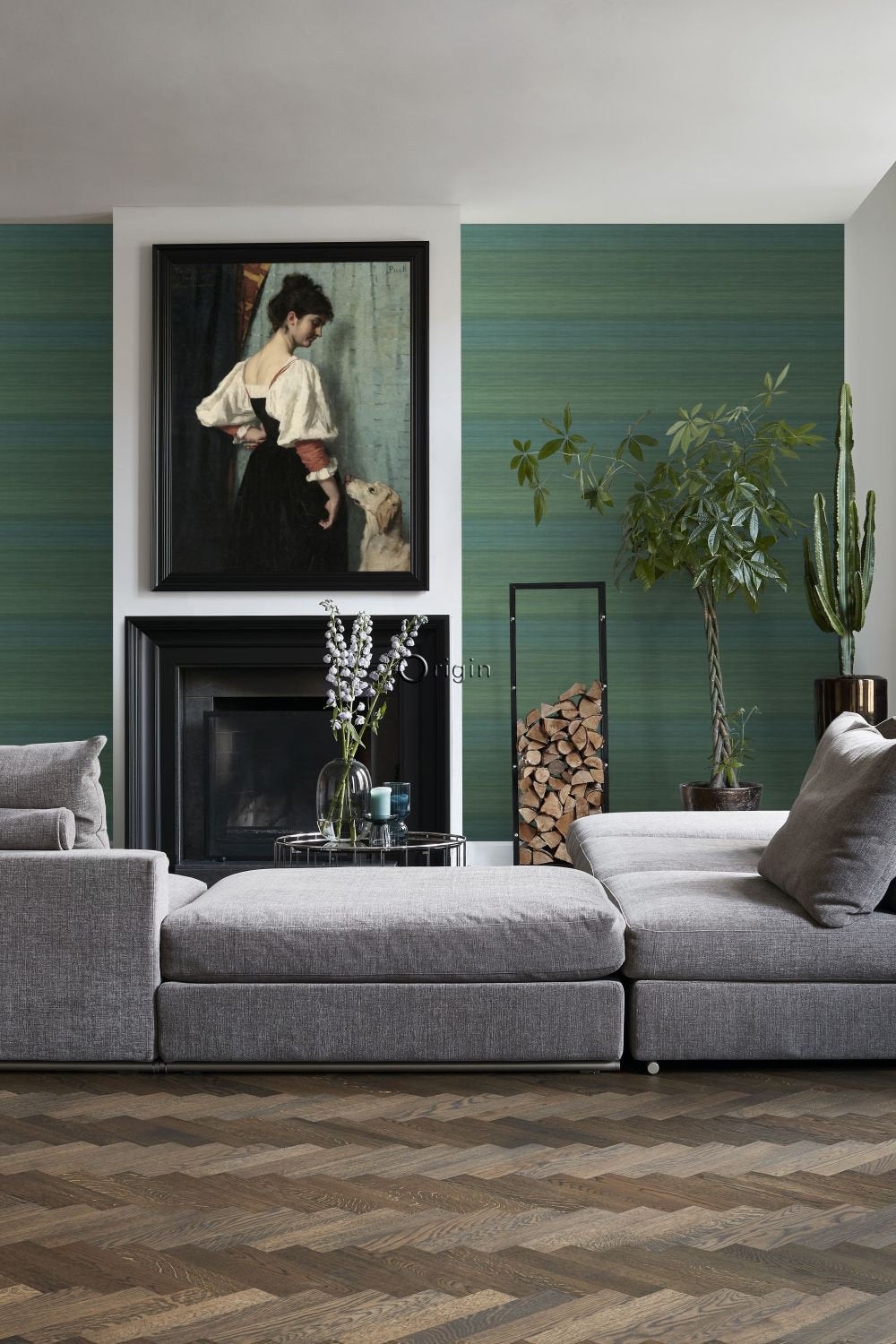 Smycka dina väggar med denna eleganta tapet med vävd struktur med lutningsfärger i havsgrönt. Försedd med en taktil eko-struktur utstrålar detta fantastiska mönster värme, lyx och raffinemang.