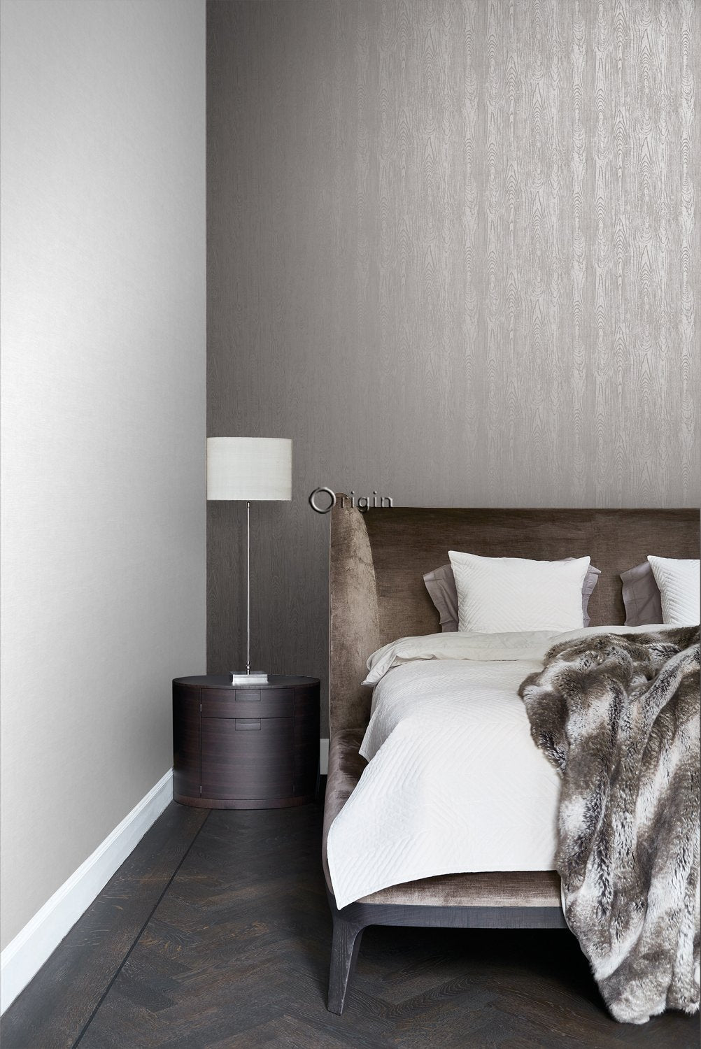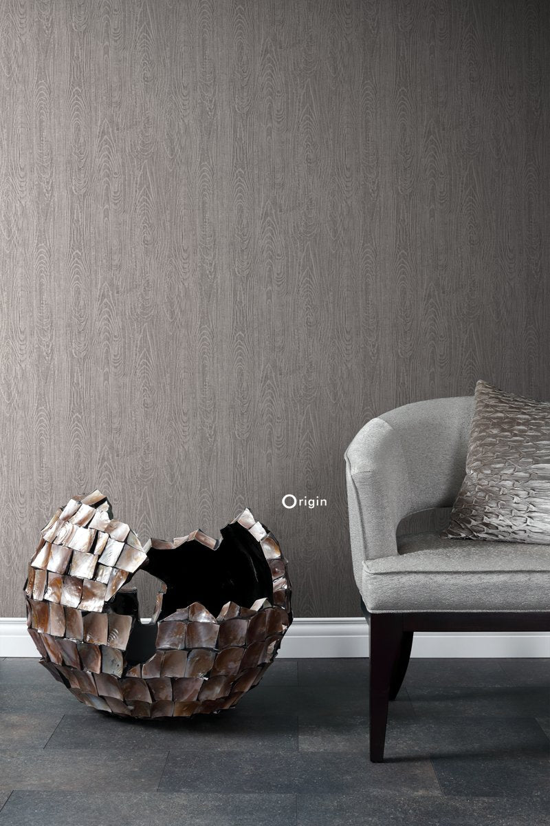 Skapa en lugn stämning med den här eleganta, naturliga tapetdesignen med träeffekt i mullvadsgrått. Tapeten har vackra, subtilt skimrande inslag och passar perfekt för att skapa en stilfull fondvägg. Försedd med en taktil eko-struktur utstrålar detta fantastiska mönster värme, lyx och raffinemang.