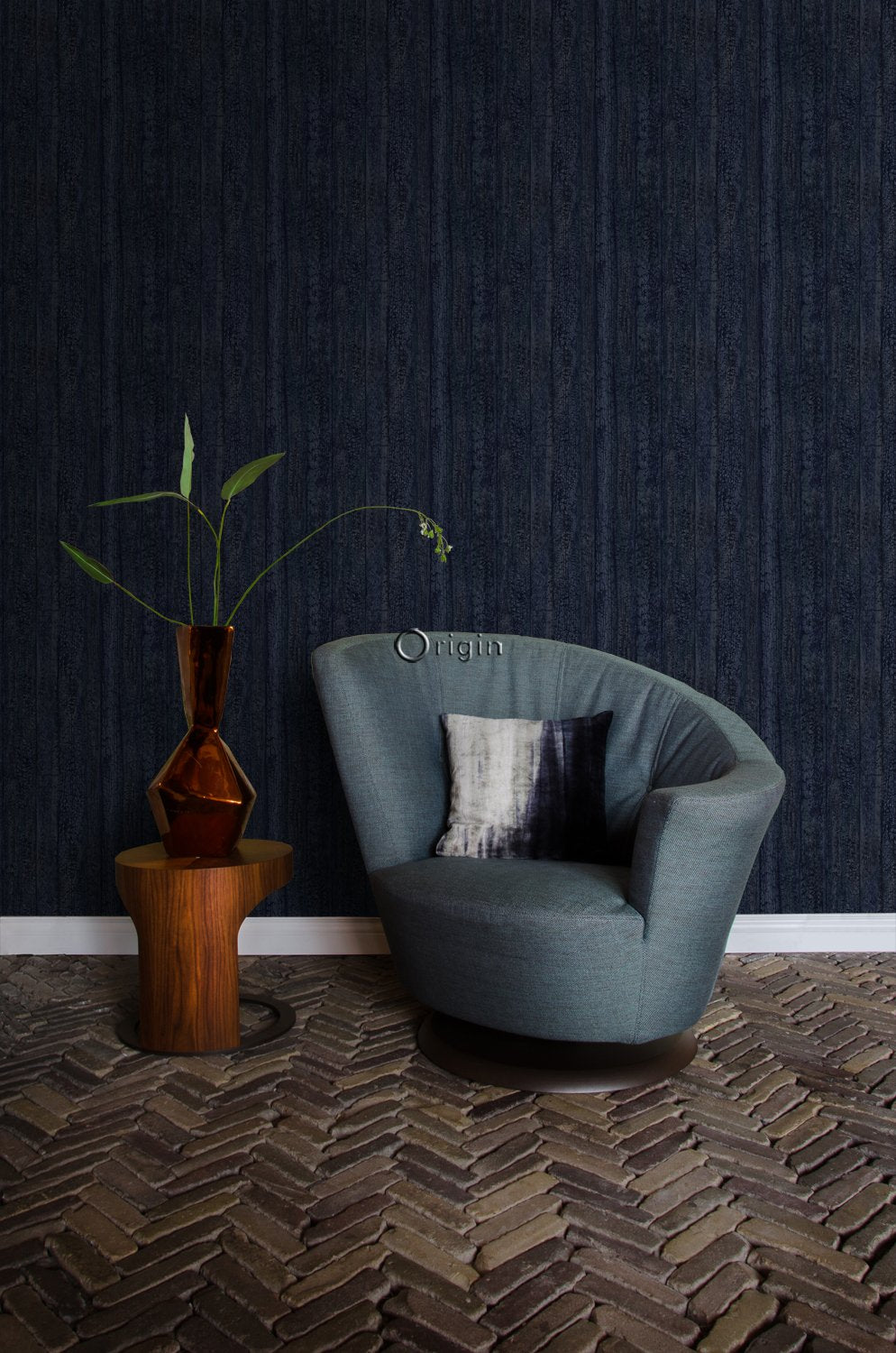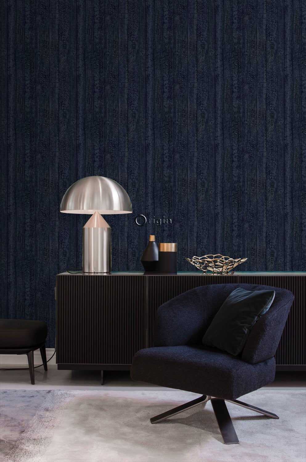Ge ditt hem en extra naturlig touch och skapa en rustik atmosfär med den här den eleganta, naturliga tapetdesignen med träeffekt i mörkblått. Tapeten har en vacker, matt yta och passar perfekt om du vill skapa en stilfull fondvägg. Försedd med en taktil eko-struktur utstrålar detta fantastiska mönster värme, lyx och raffinemang.
