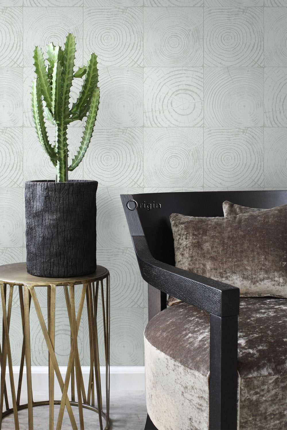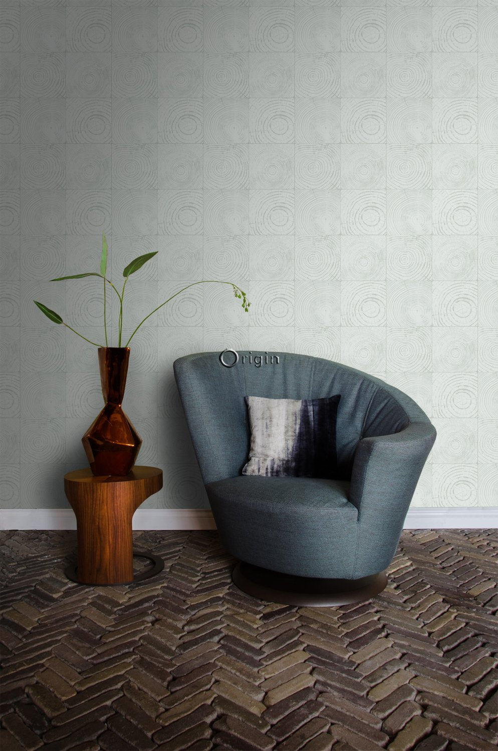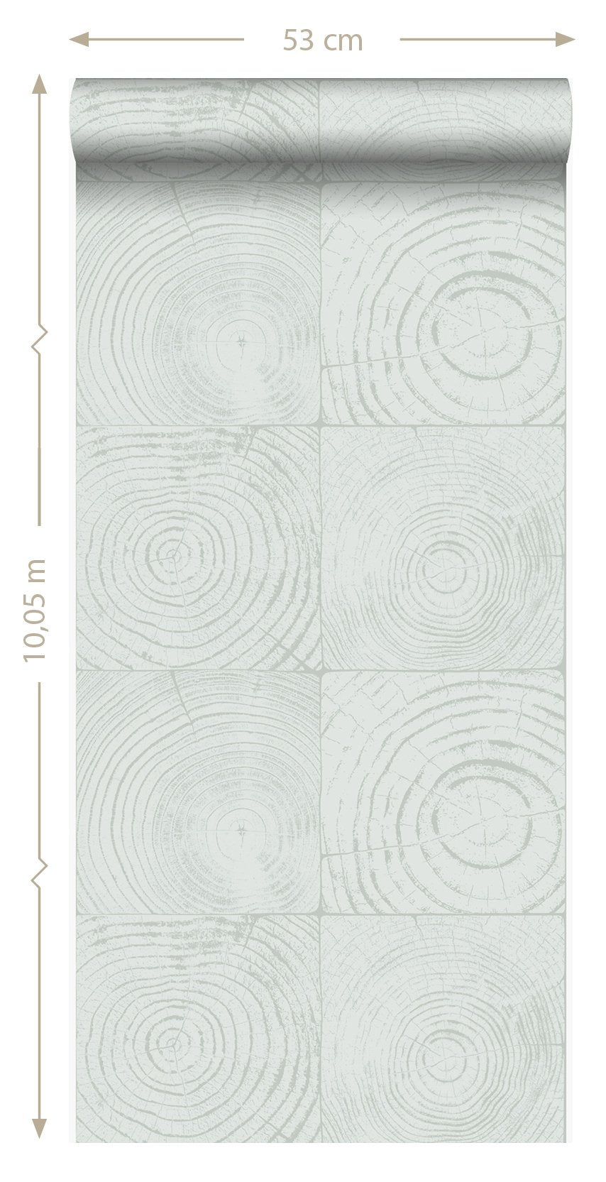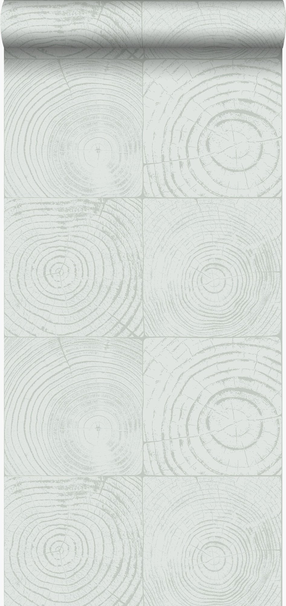 Denna iögonenfallande tapet med tvärsnitt trädstammar i mintgrönt imiterar den naturliga känslan och utseendet hos trä. Ytmönstret intensifierar designen och bidrar till en varm och personlig interiör.