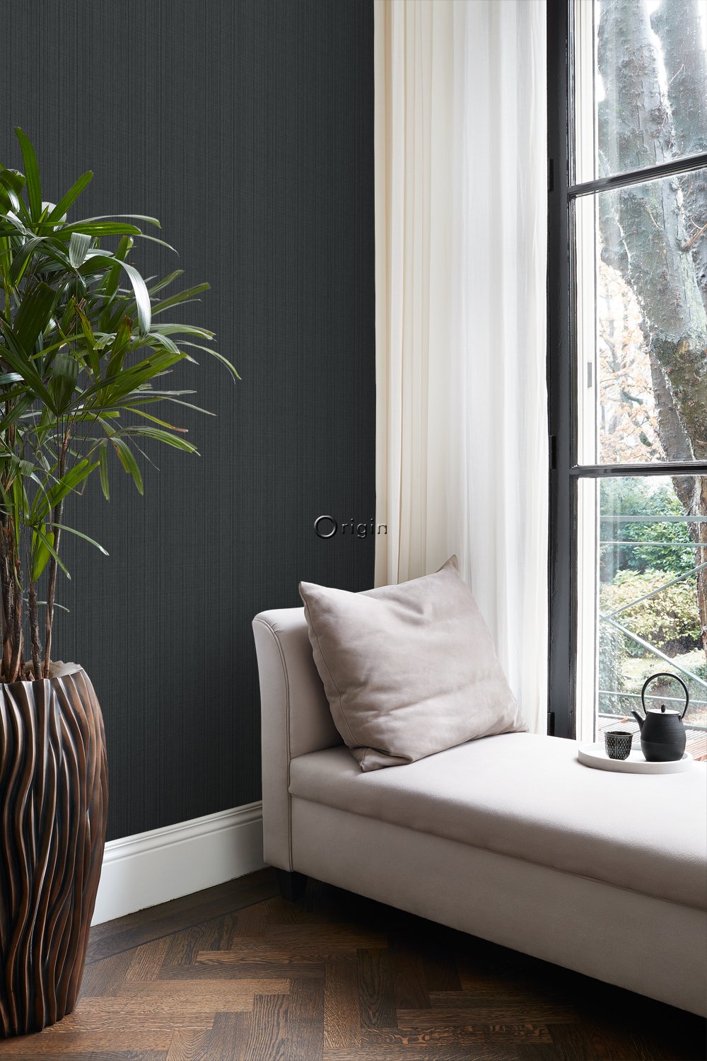 Smycka dina väggar med denna eleganta tapet med vävd struktur i mörkgrått. Försedd med en taktil eko-struktur utstrålar detta fantastiska mönster värme, lyx och raffinemang.