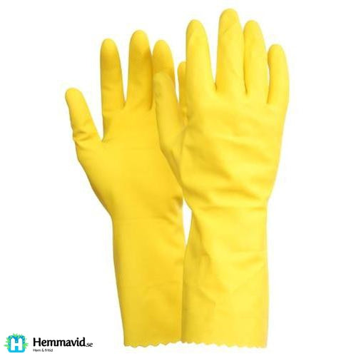 Gul traditionell diskhandske i tjockare latex på 0,45 mm. Handskens längd är 30 cm.