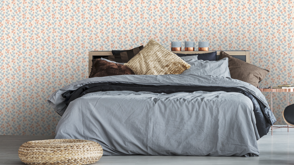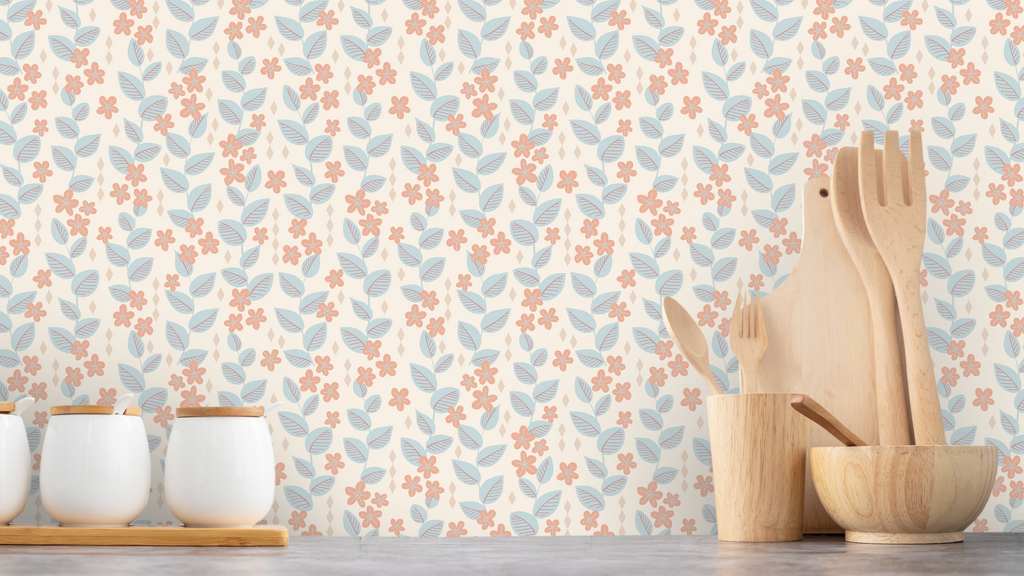 Diamond Flowers - små söta blommor och blad som i hängande slingor. Finns i två varianter på vit botten, en med gula och en med röda blommor och två på färgad botten en på röd och en på gul botten med vita blommor. Passa bra i de flesta rum.