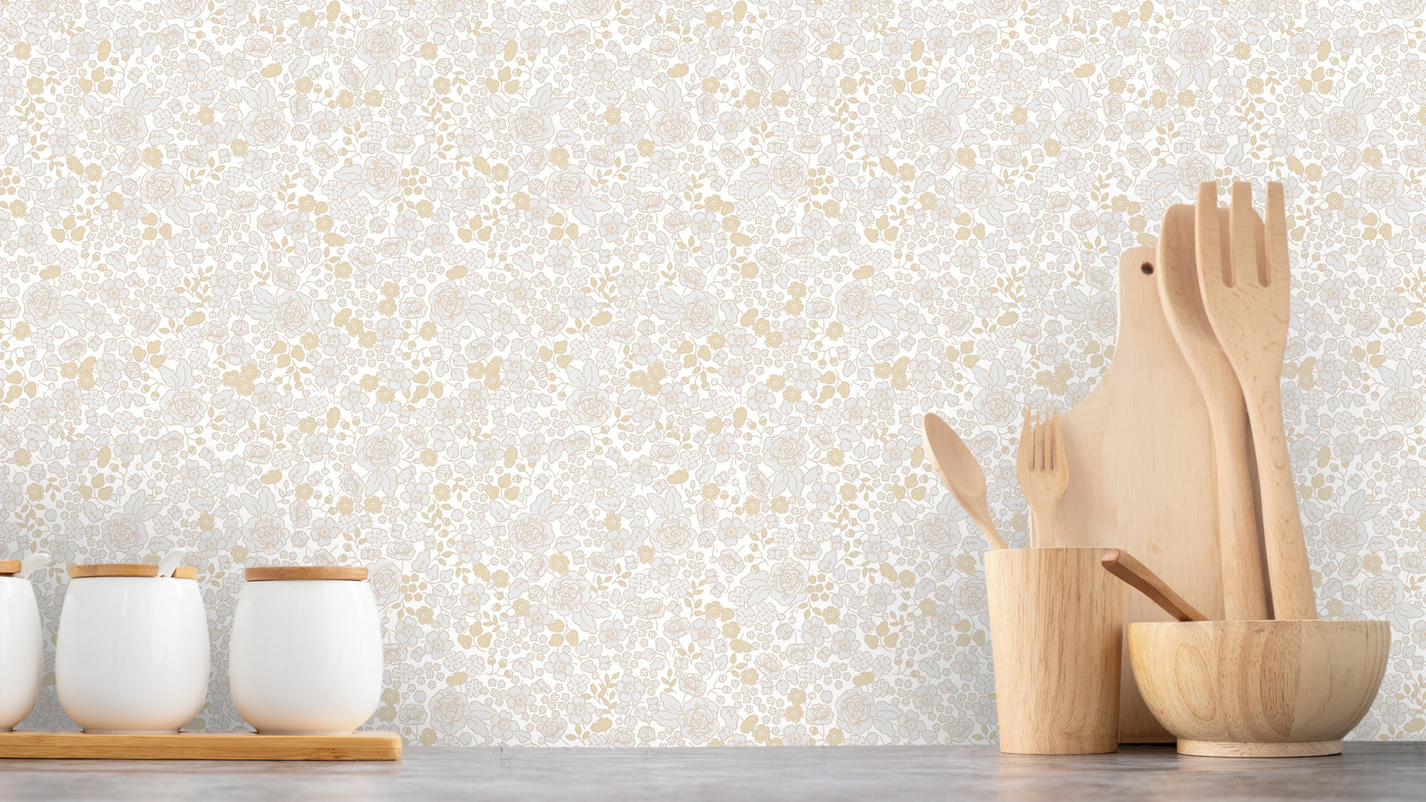 Den romantiska estetiken i denna tapet ger en mjukhet och lugn som är idealisk för sovrum och vardagsrum. Blommornas varierande storlek ger en naturlig känsla och ger också en vacker dynamik till rummet. Det är en tapet som gör att man känner sig hemma och som lätt kan kombineras med andra inredningselement.