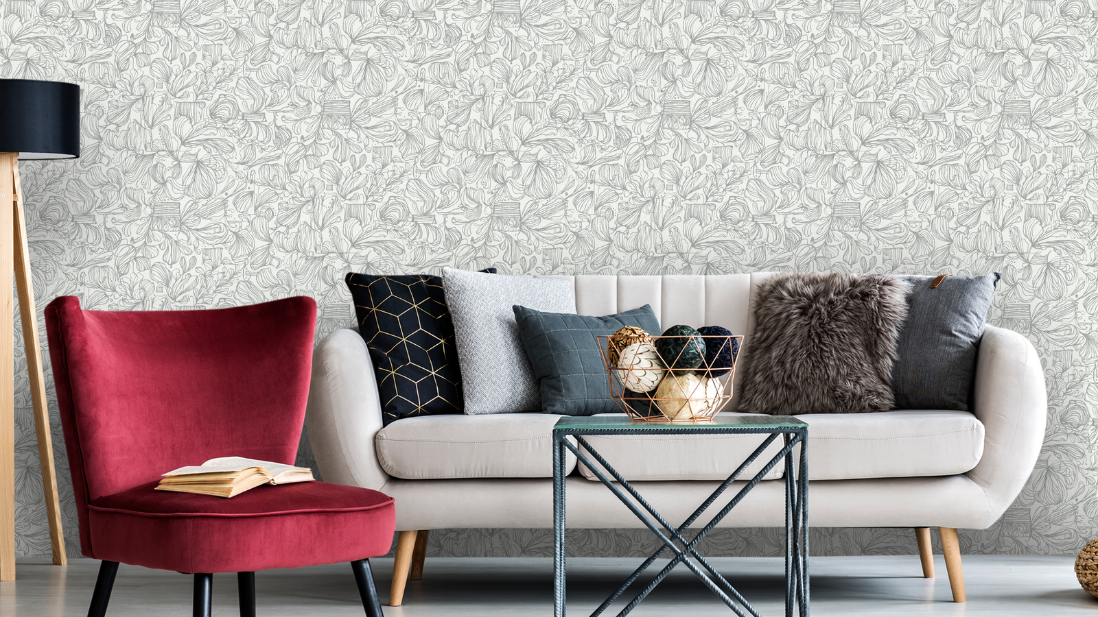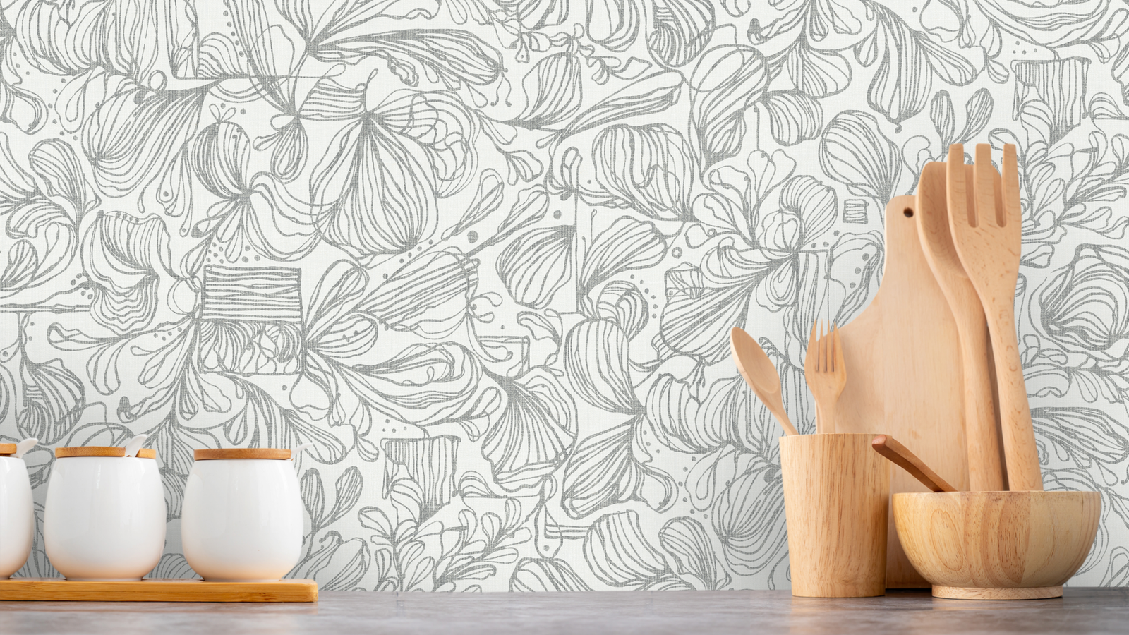 Lines - upptäck en tapet som förtrollar med sin koltecknade, stilistiska design. Denna tapet bjuder på ett vackert blommönster som tar centrum på väggen. Med en subtil och diffus bakgrund ger den en känsla av mystik och drömskhet i rummet.